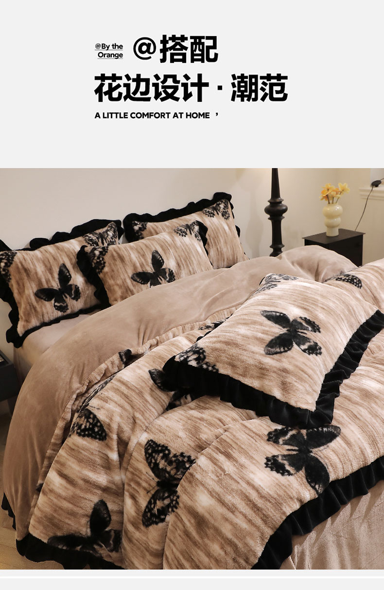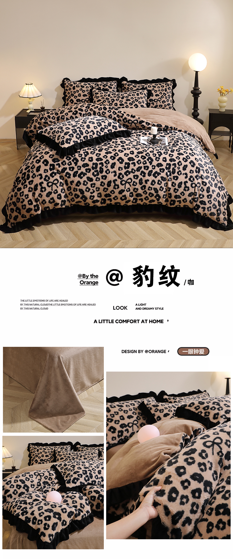 (总)席之家 2025新款韩版黑色花边美拉德系加厚皮草兔毛绒四件套,蝶舞,豹纹 灰,豹纹 咖,粉黛,花笺,极简 灰,极简 咖,觅影,条纹