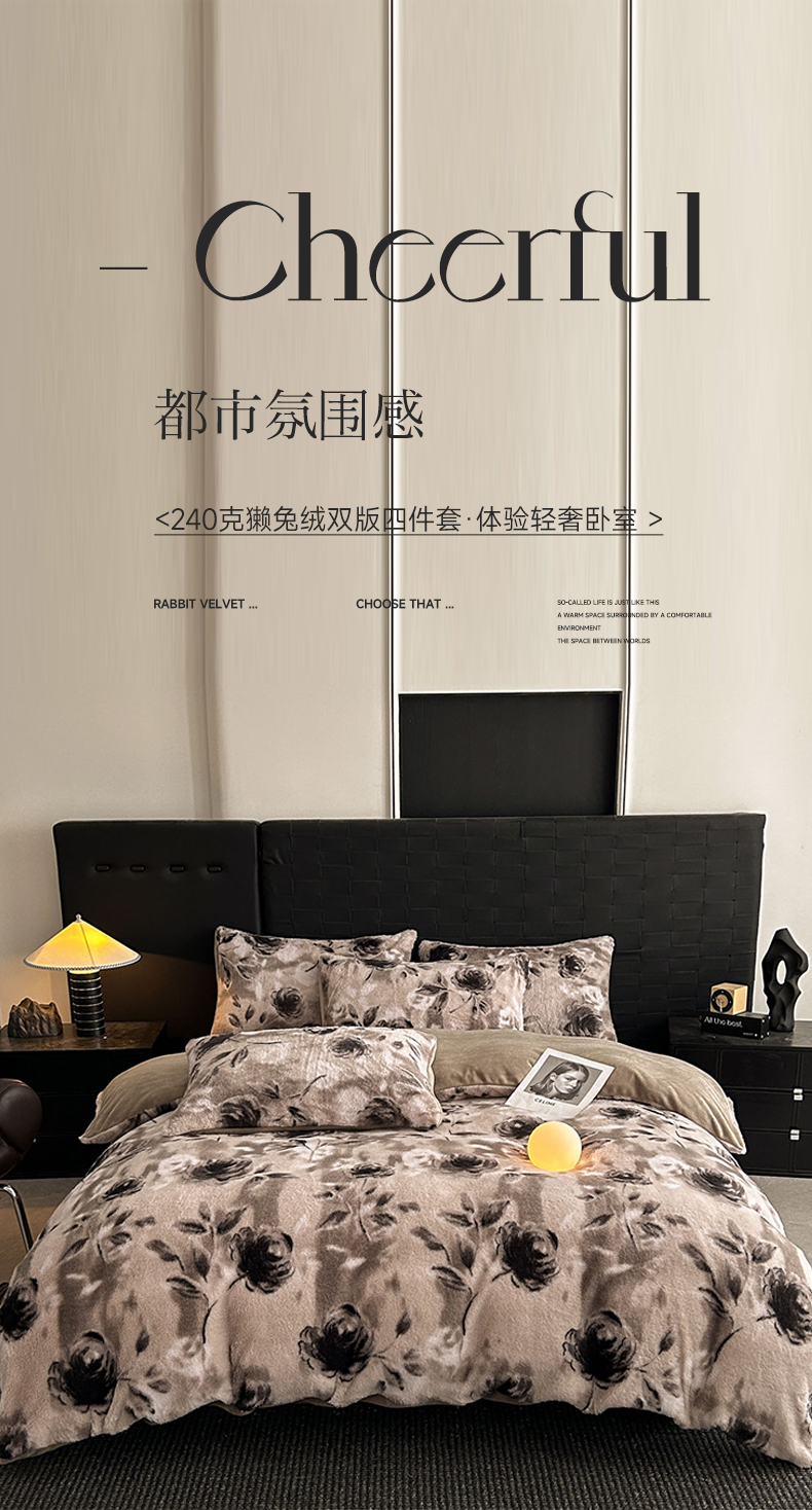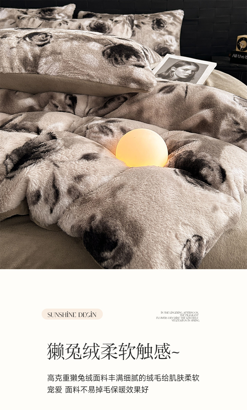 当前位置: 91家纺网 > 商品网购 > 床品套件 > 四件套 > 兔毛绒四件套 > 蓝极人 2025新款美拉德系兔绒兔毛绒兔兔绒印花四件套 韵赫浅玫