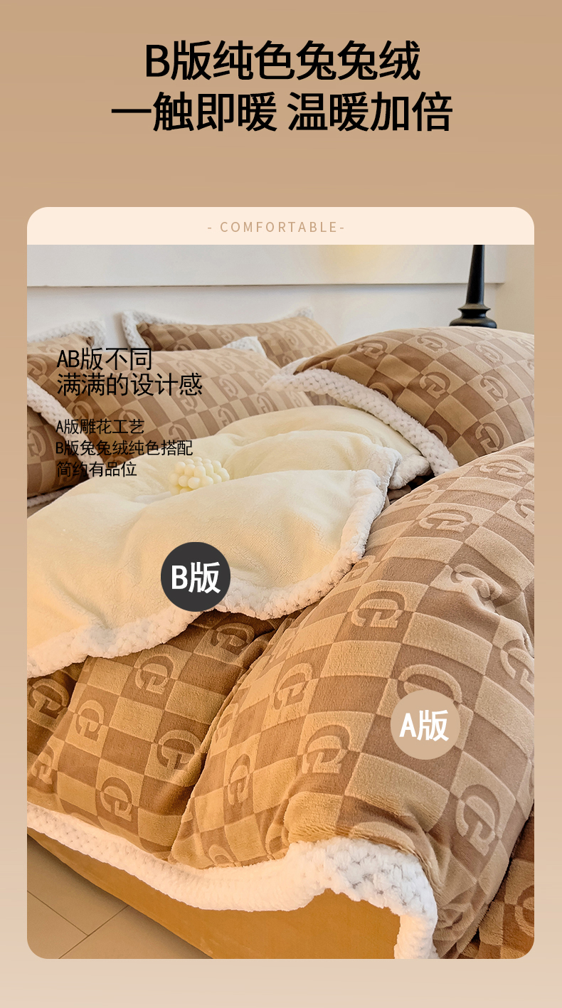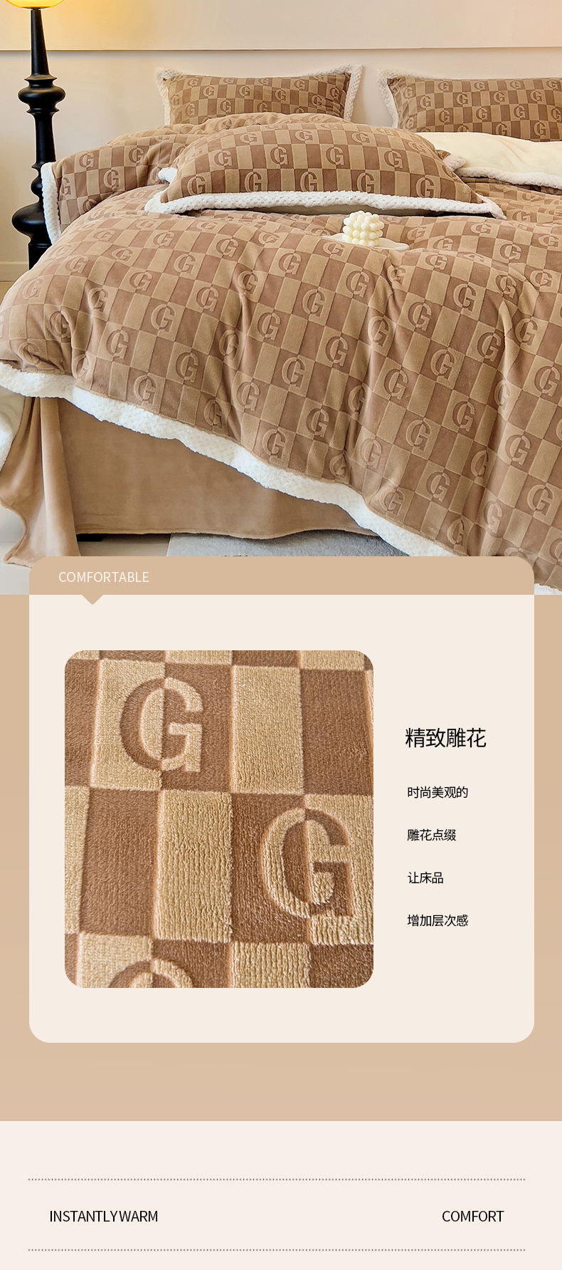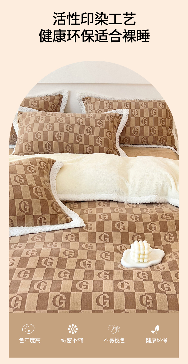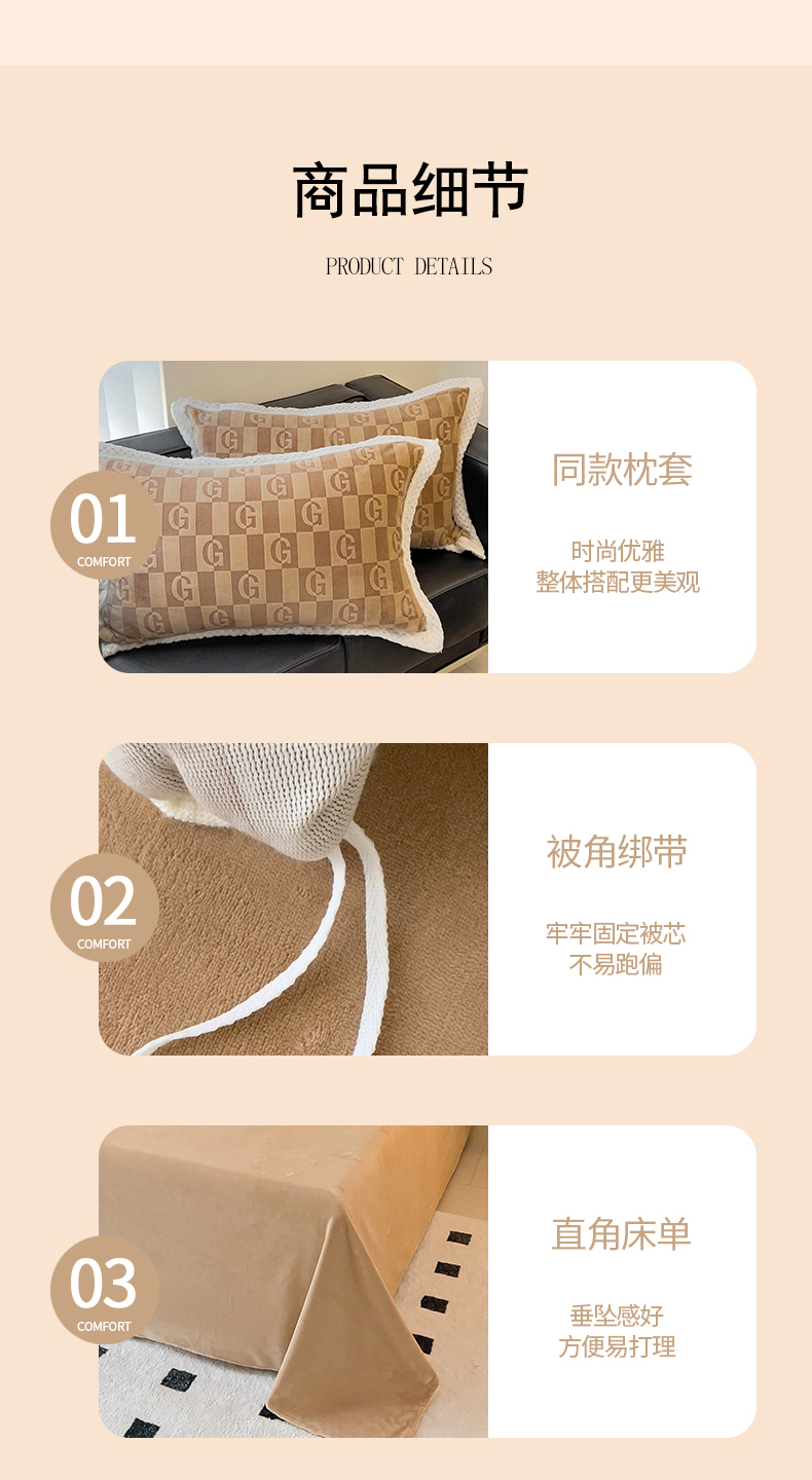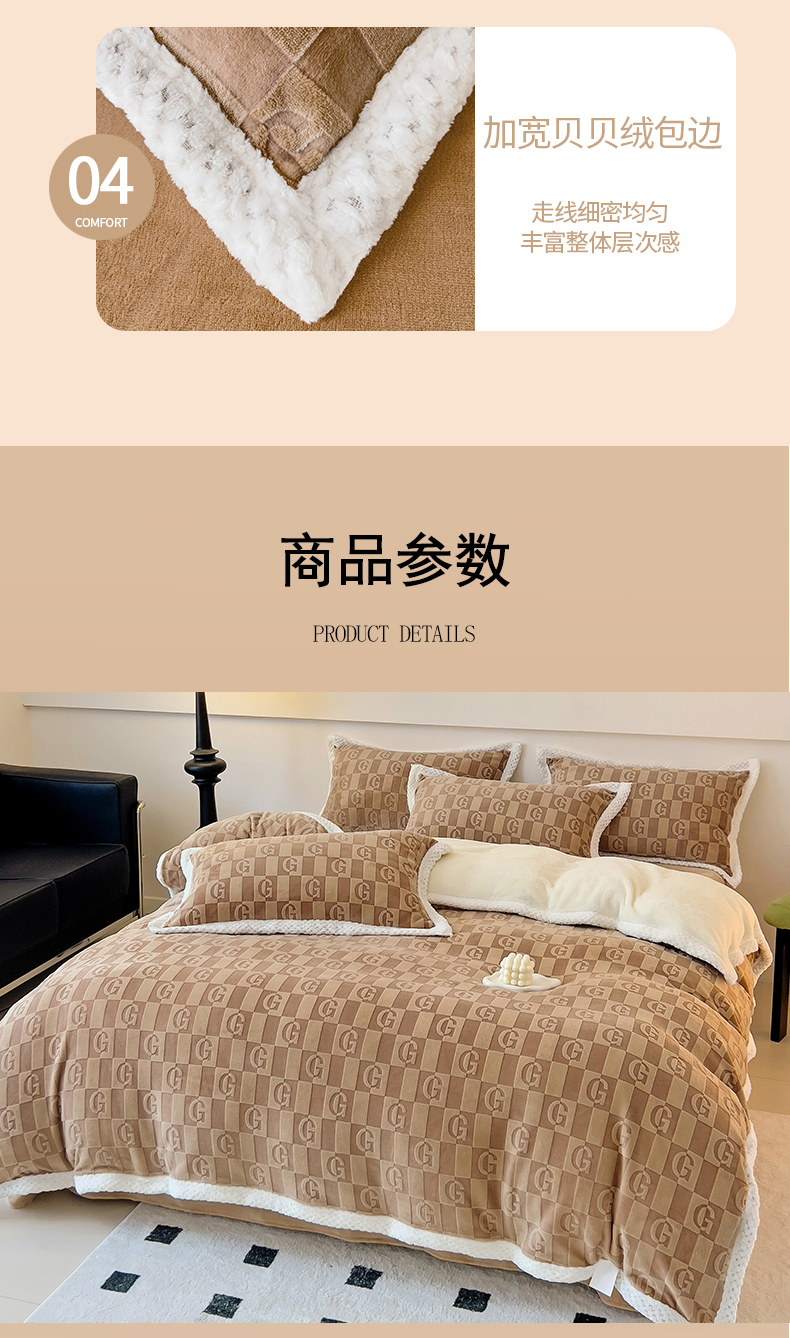 当前位置: 91家纺网 > 商品网购 > 床品套件 > 四件套 > 雕花绒四件套 > 琪格格纺织 2025新款全消光包边立体简约清新雕花绒四件套 包边绒 麦格娅 咖