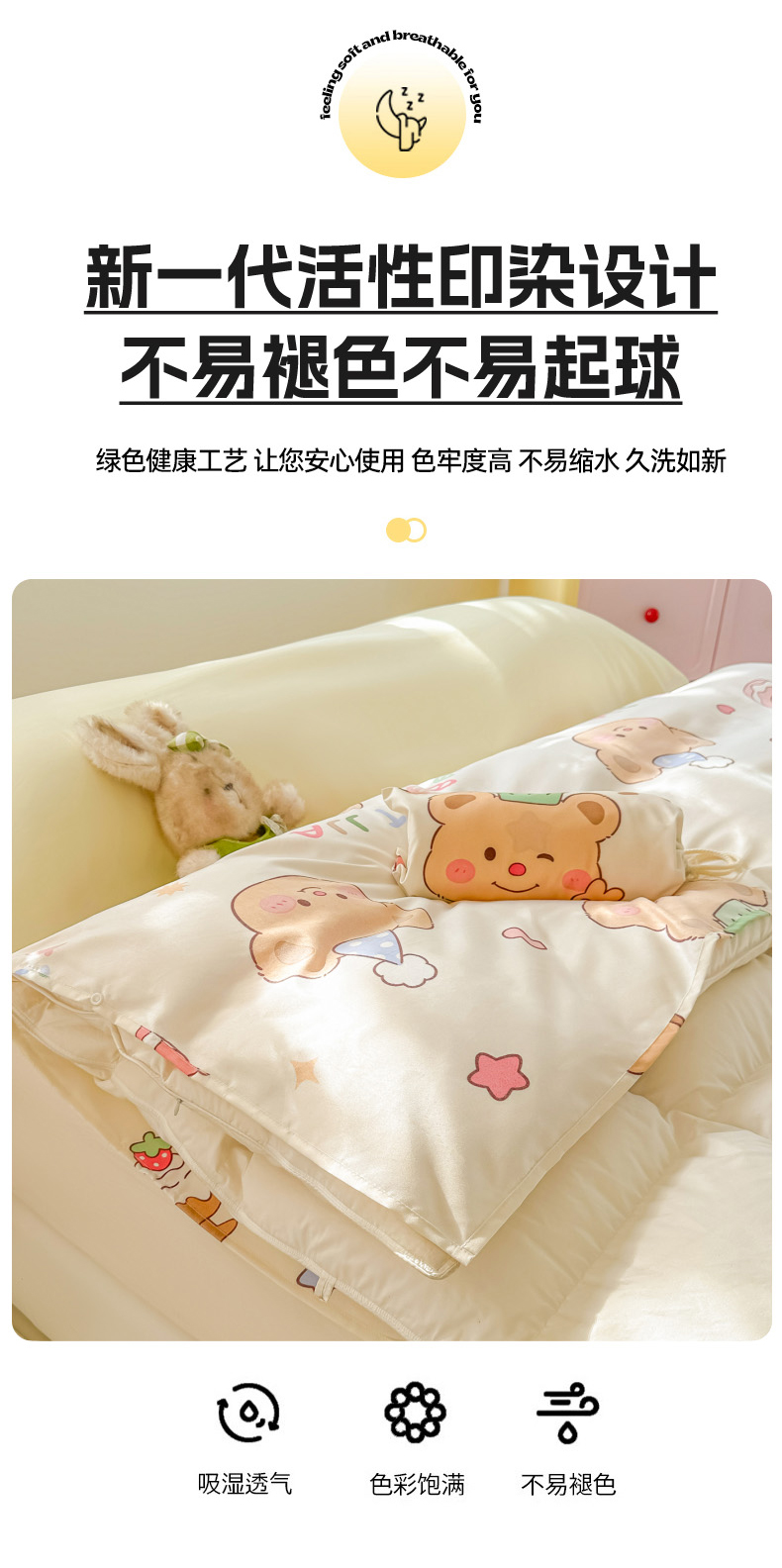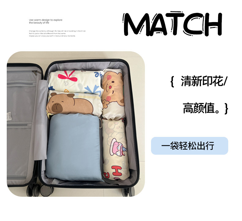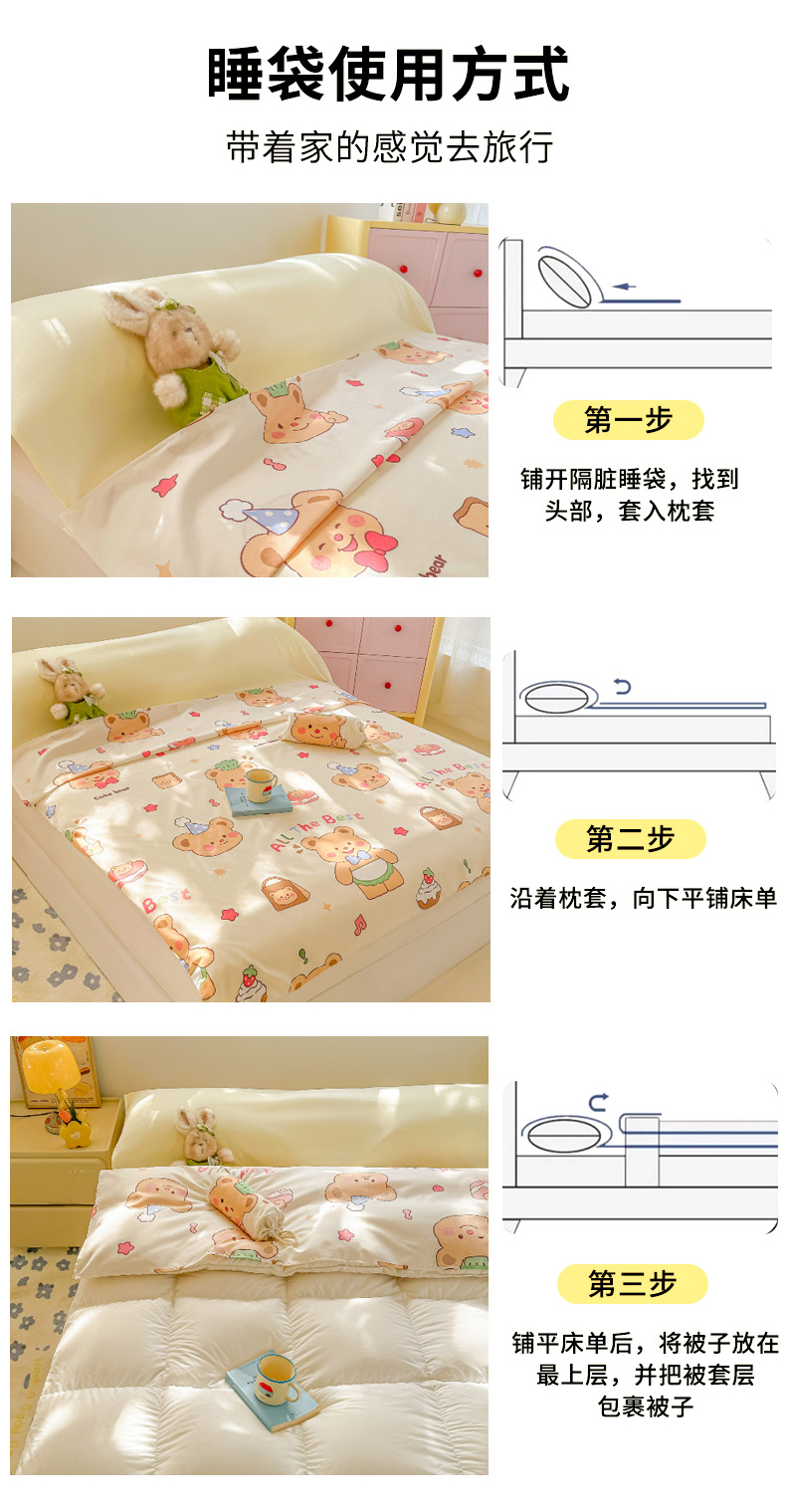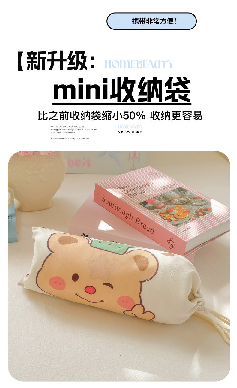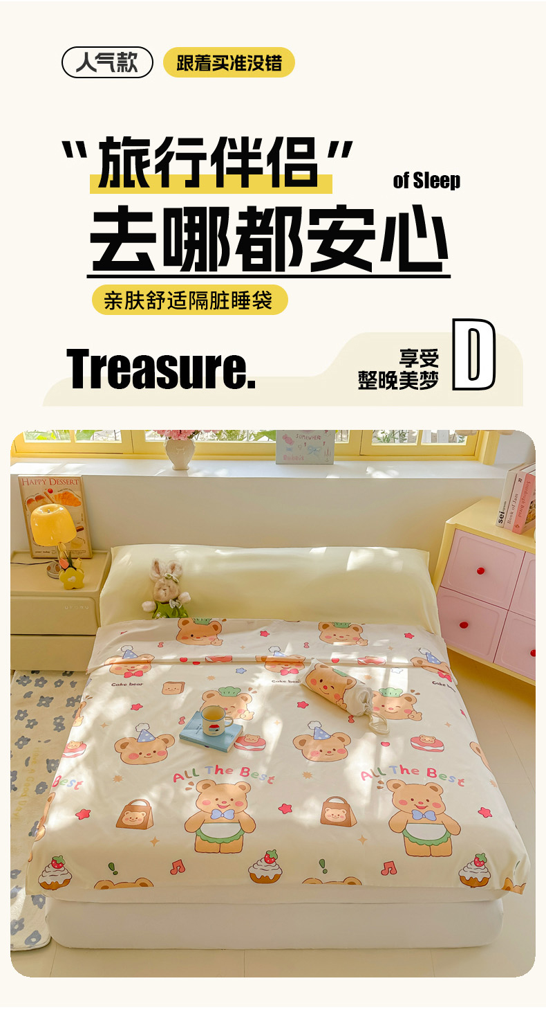 商品名称:柒星睡袋 2025新款新升级mini收纳袋印花系列隔脏睡袋 黄油小熊