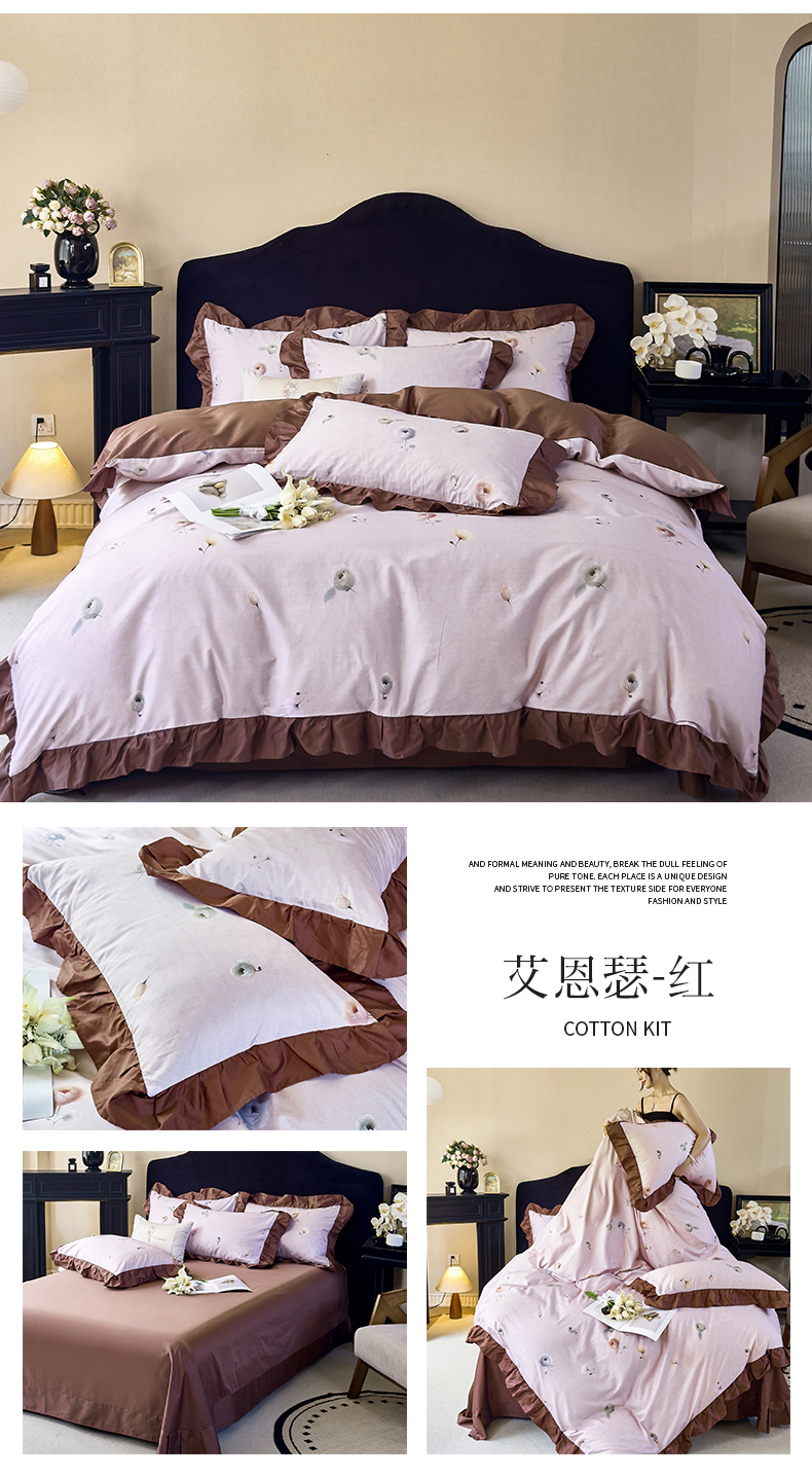 当前位置: 91家纺网 > 商品网购 > 床品套件 > 四件套 > 全棉普通四件套 > 未来家居 2025新款法式全棉贡缎花边款数码印花四件套 玛利戈德-红