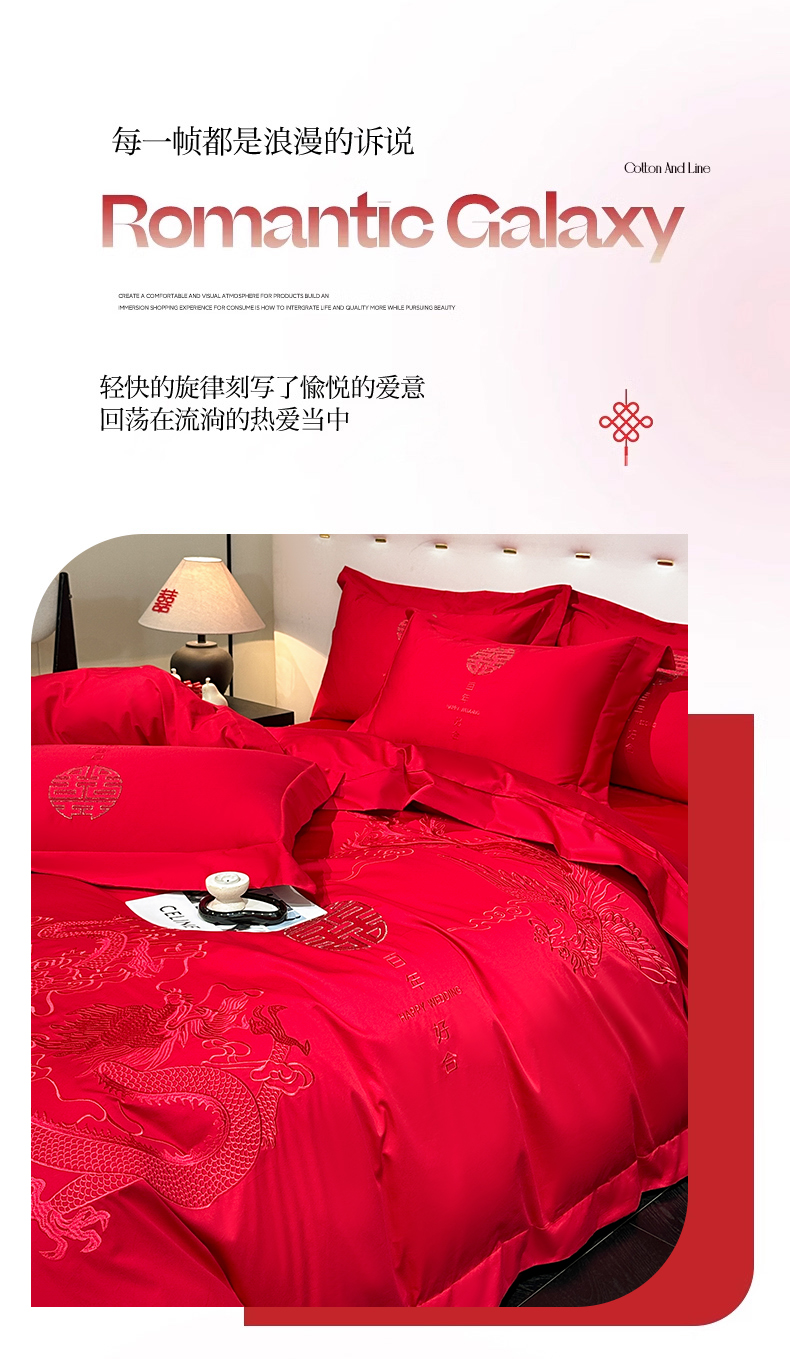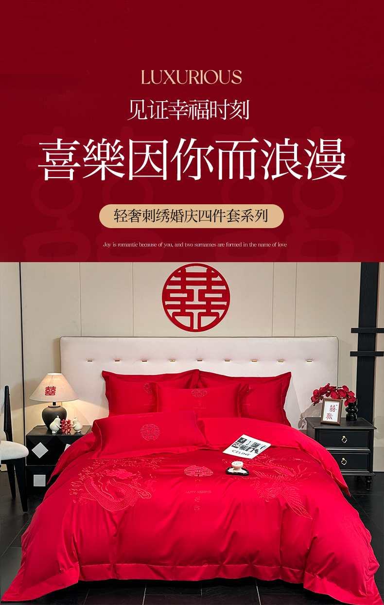(总)金喜 2025新款婚庆刺绣四件套,百年好合-红,百年好合-金,情意绵绵