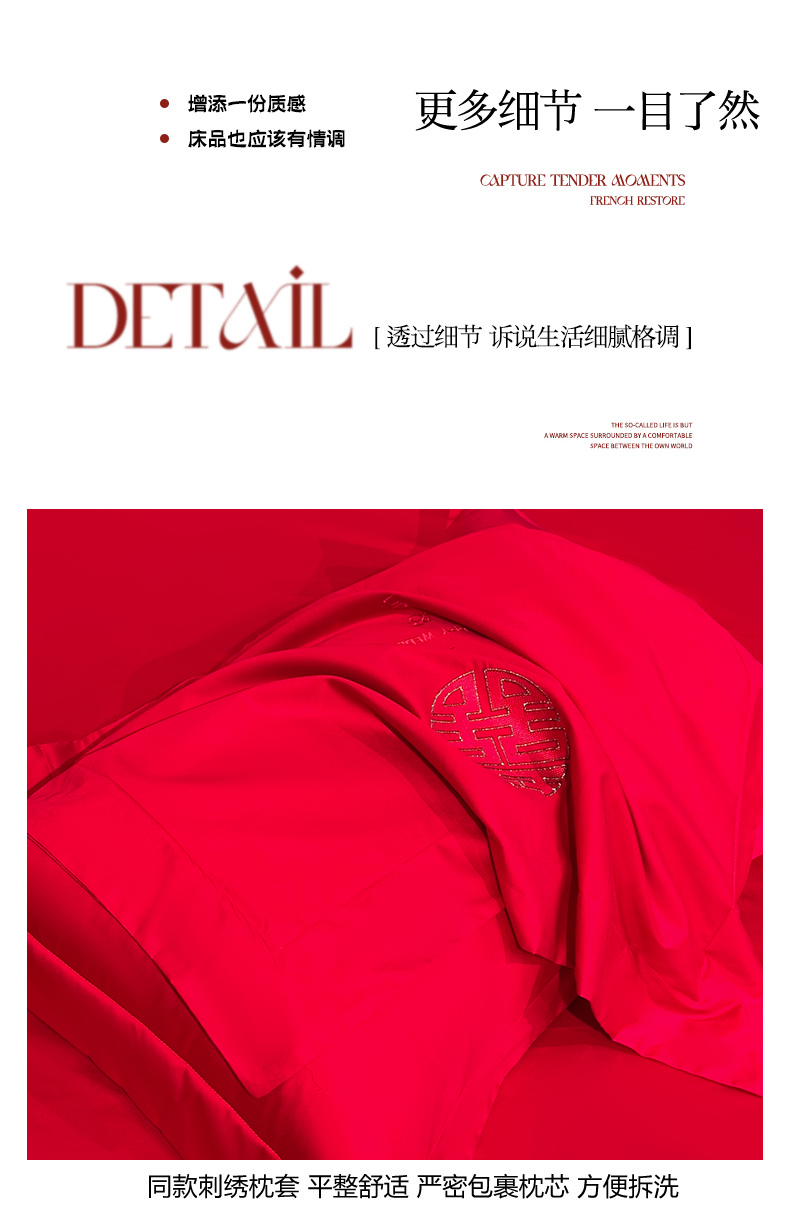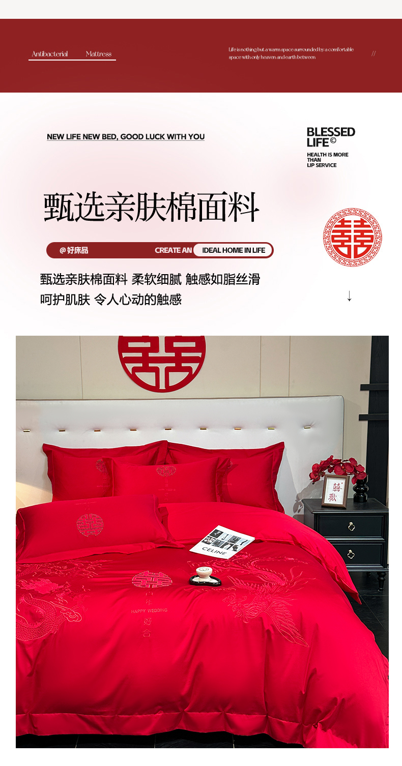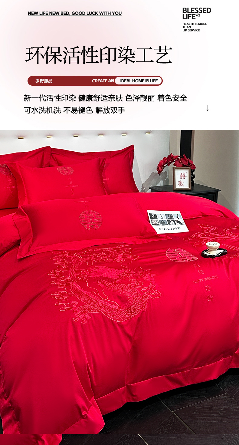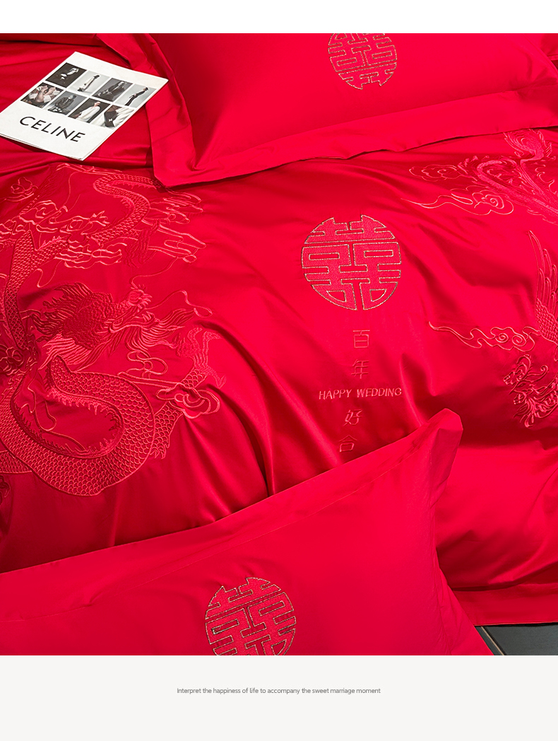 商品名称:金喜 2025新款婚庆刺绣四件套 百年好合-红