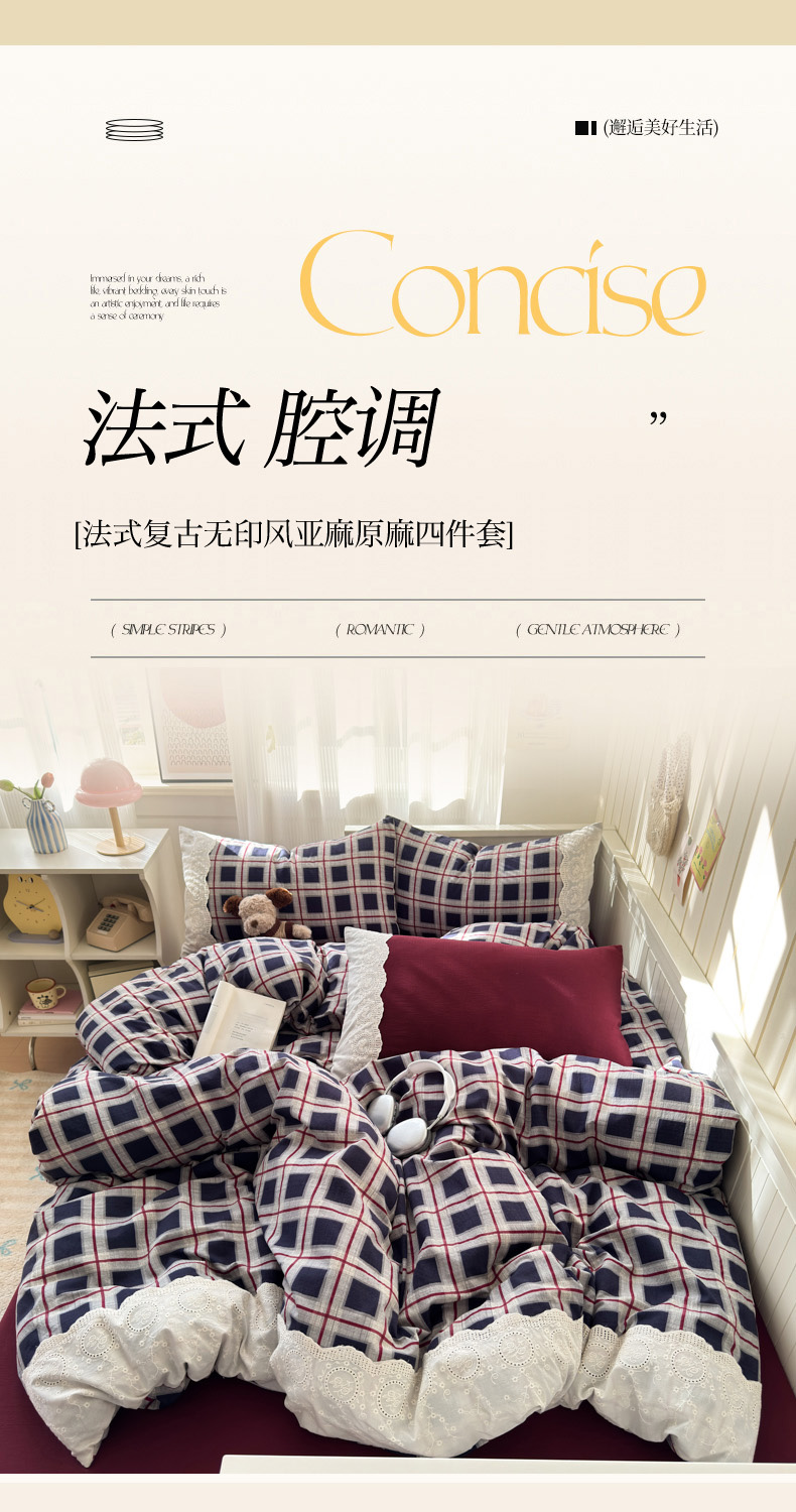 当前位置: 91家纺网 > 商品网购 > 床品套件 > 四件套 > 其它四件套 > 上尚居 2025新款高克重法式复古无印风亚麻原麻四件套 布朗妮