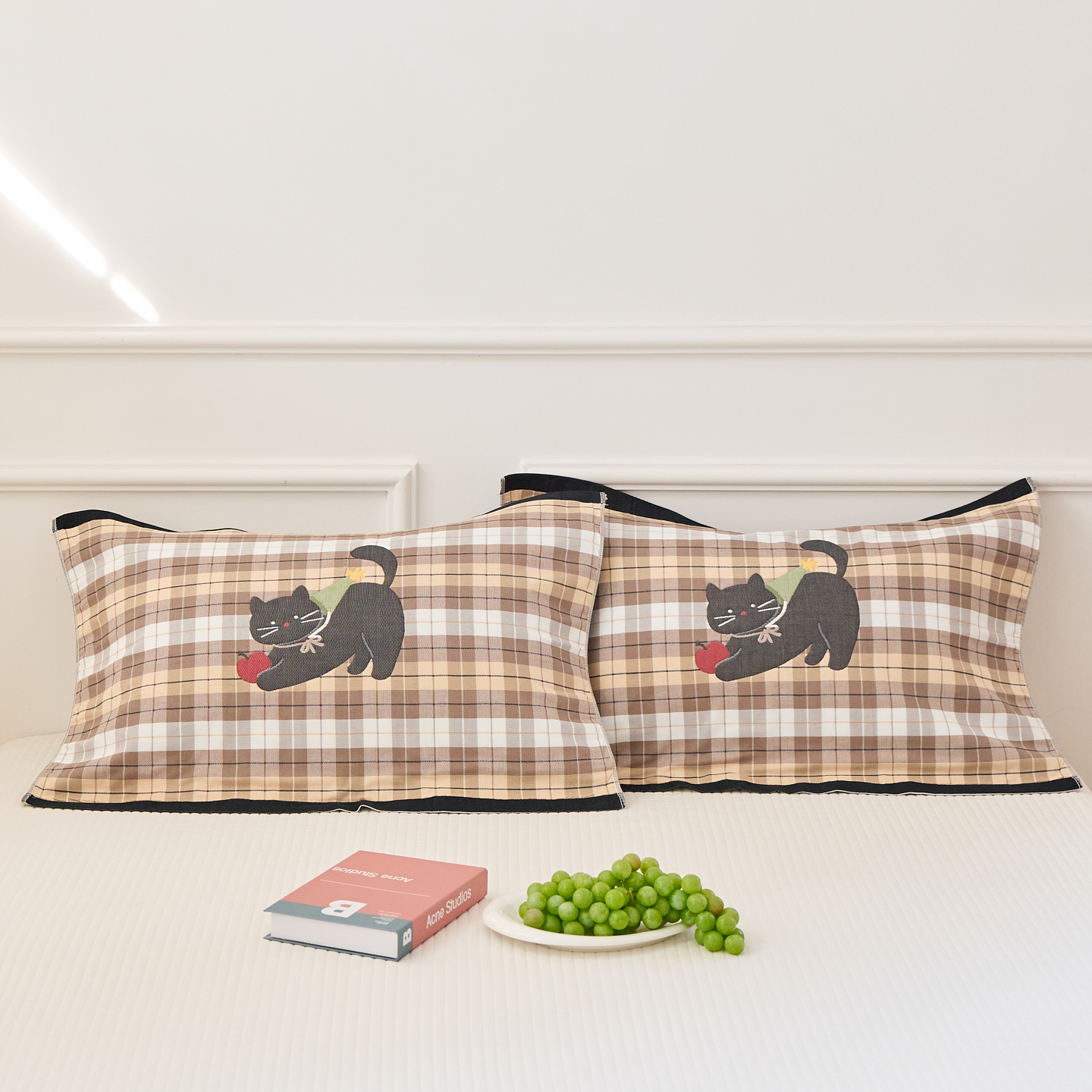 商品名称:沐瑟家纺 2025新款卡通格子纯棉八层枕巾(含质检报告) 给予猫