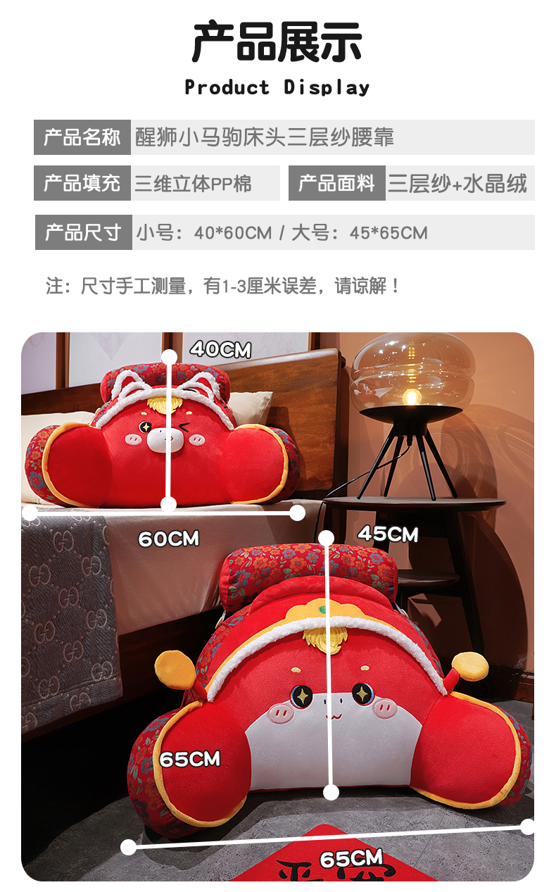 当前位置: 91家纺网 > 商品网购 > 居家日用 > 靠垫/抱枕 > 仟亿莱 2025新款醒狮小马驹三层纱拥抱式腰靠 组合图仅做展示不可下单