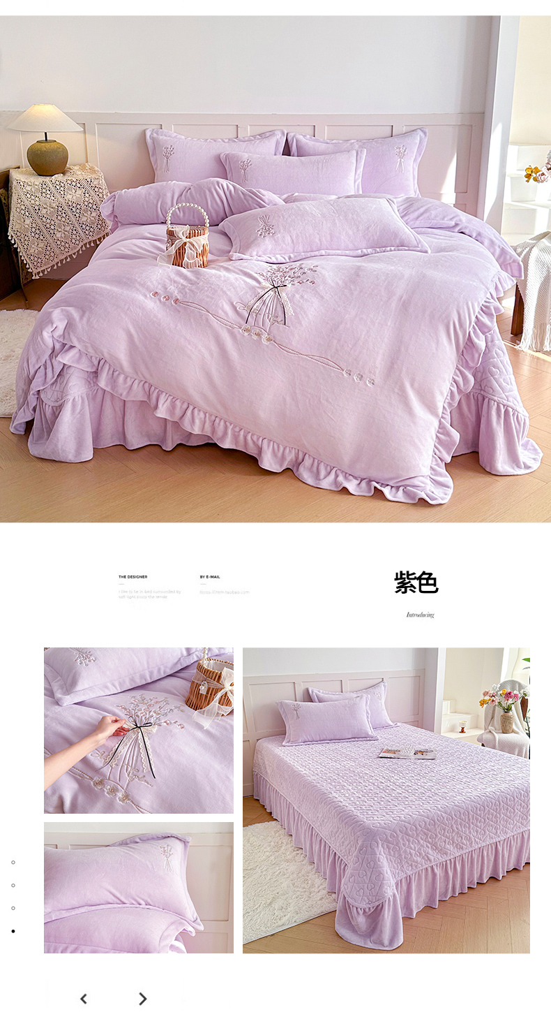 金绣美居 2025新款加厚牛奶绒韩版床盖款绣花手工花保暖四件套-白茶 紫色