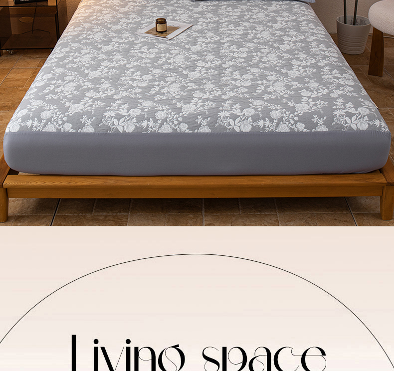 小叮当家纺仓储工厂店 (买家秀 爆款花型 不断货)2025新款舒适简约A类全棉三层纱单品床笠单件床笠 慕白-锡器灰