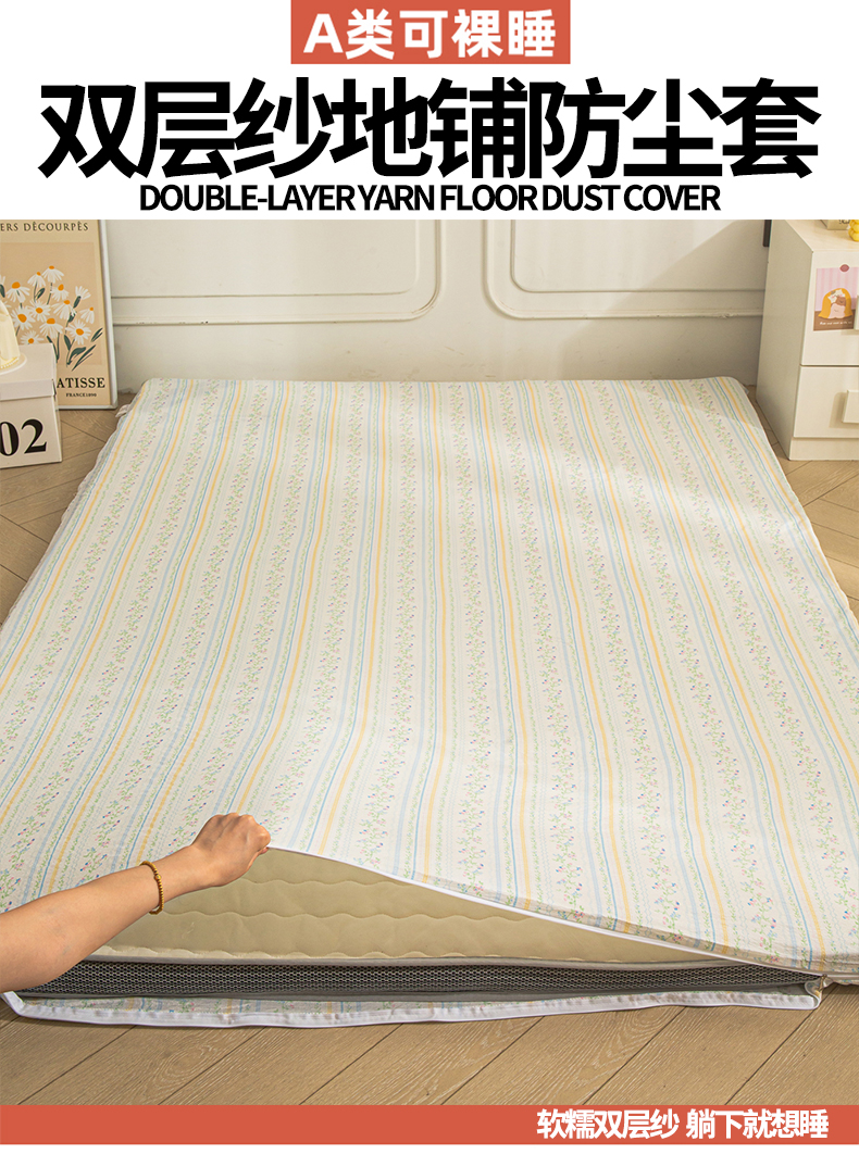 当前位置: 91家纺网 > 商品网购 > 床上用品 > 床垫套 > 小叮当家纺仓储工厂店 【长期供货】2025新款双层纱地铺防尘套【支持小批量定制】 S绿园