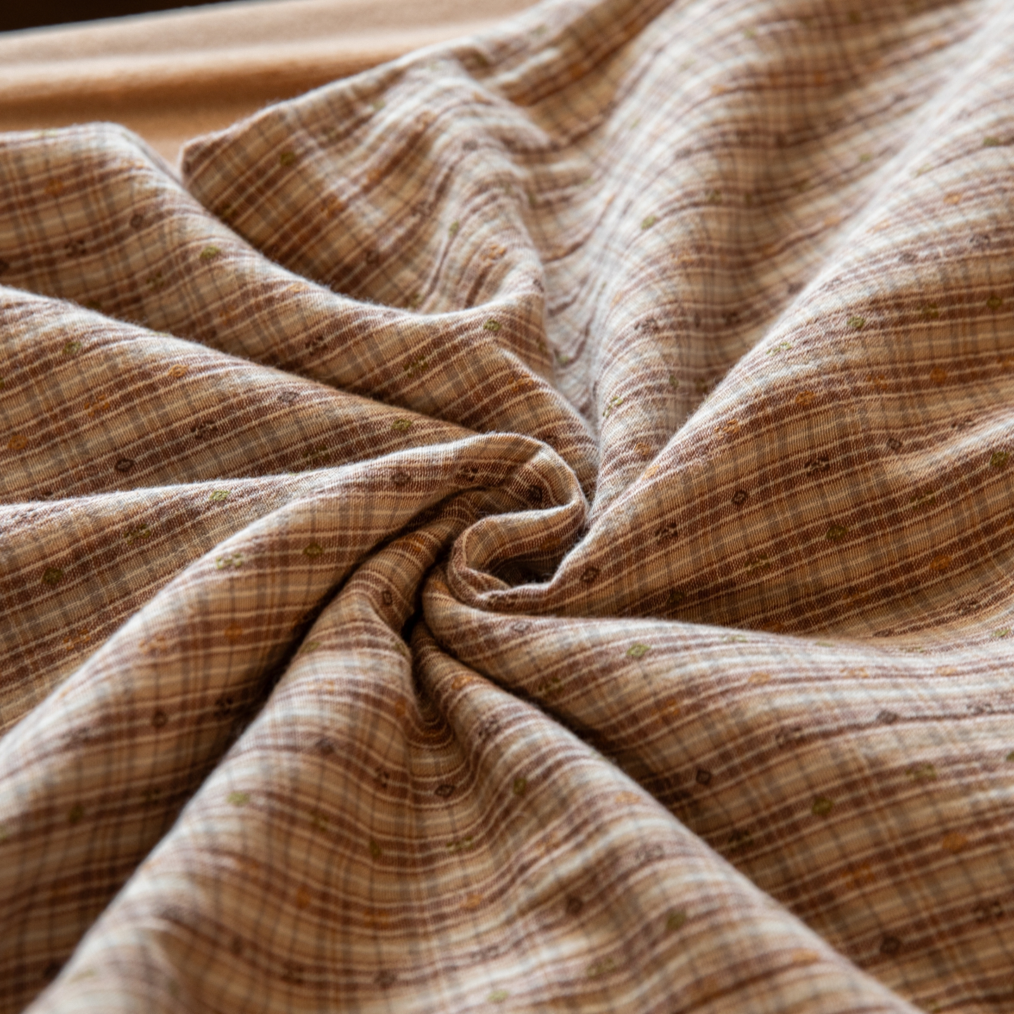 (总)仰望棉麻双层纱供应链 2025新款弥山AA版全棉色织提花双层纱春秋被冬被被子被芯,弥山-朱红,弥山-咖色