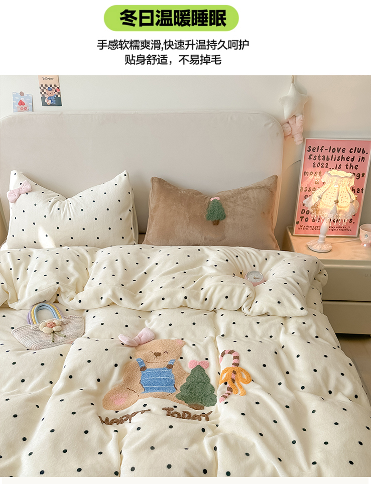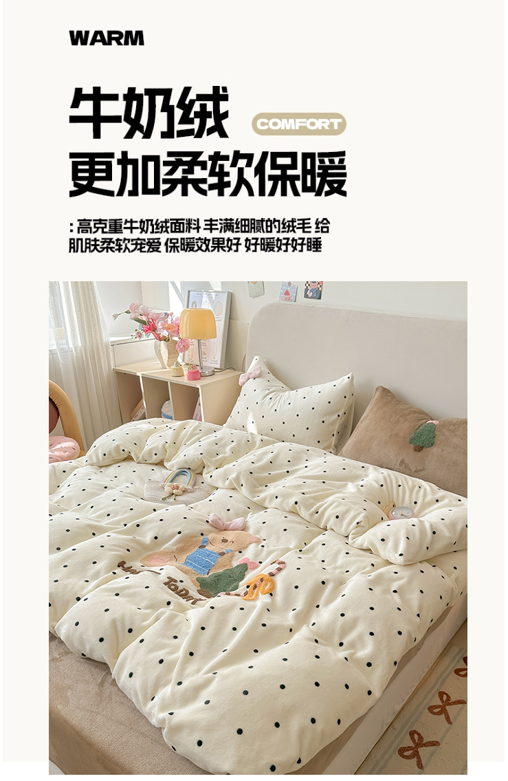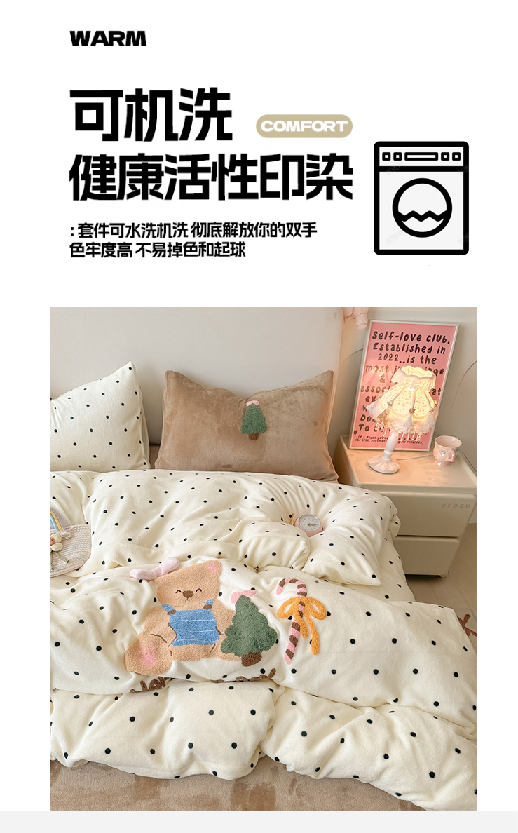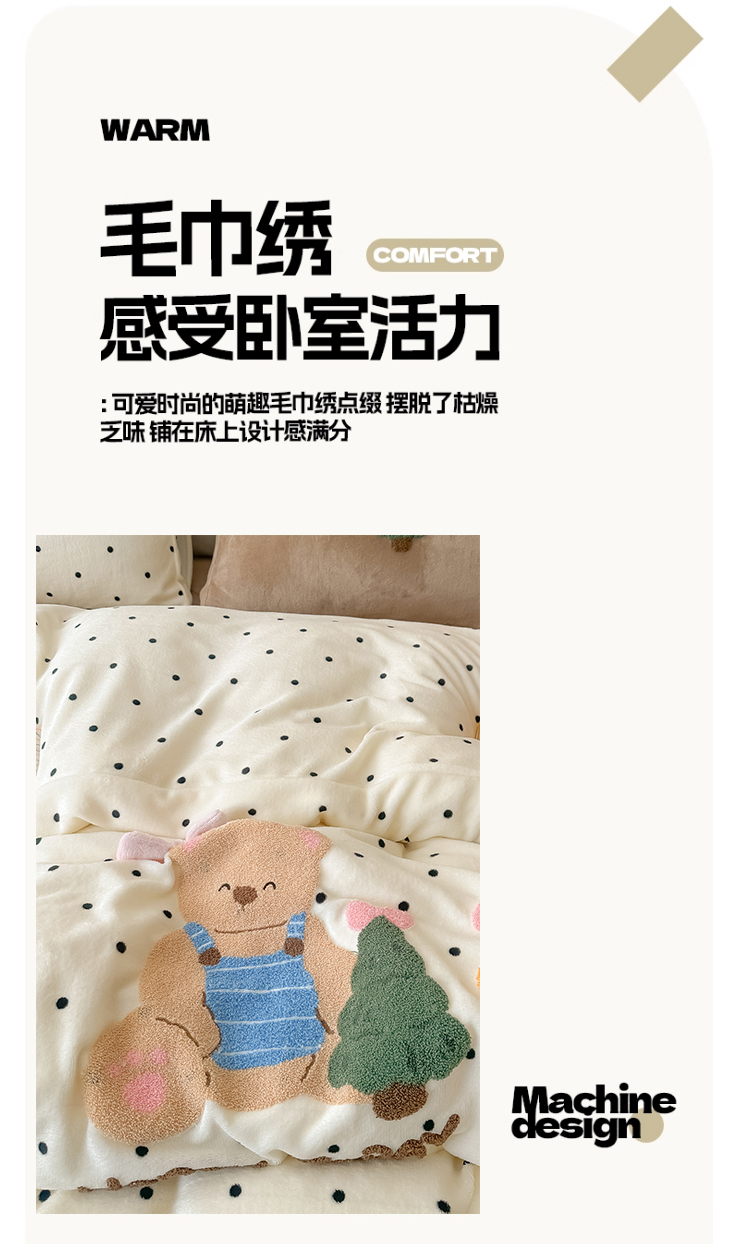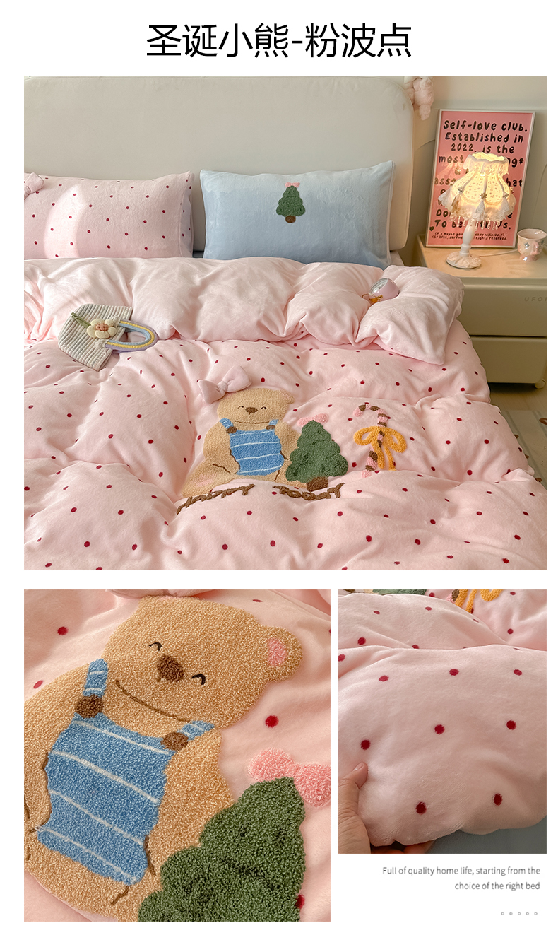当前位置: 91家纺网 > 商品网购 > 床品套件 > 四件套 > 牛奶绒四件套 > 子钦家纺 2025秋冬新款加厚牛奶绒撸猫感毛巾绣四件套-圣诞小熊 圣诞小熊-奶波点