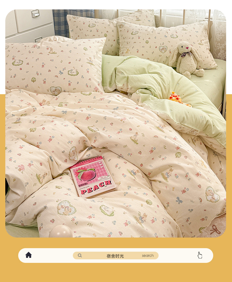 简宜家居(朝初家纺) 2025新款12868全棉兔与花笺系列四件套 兔与花笺