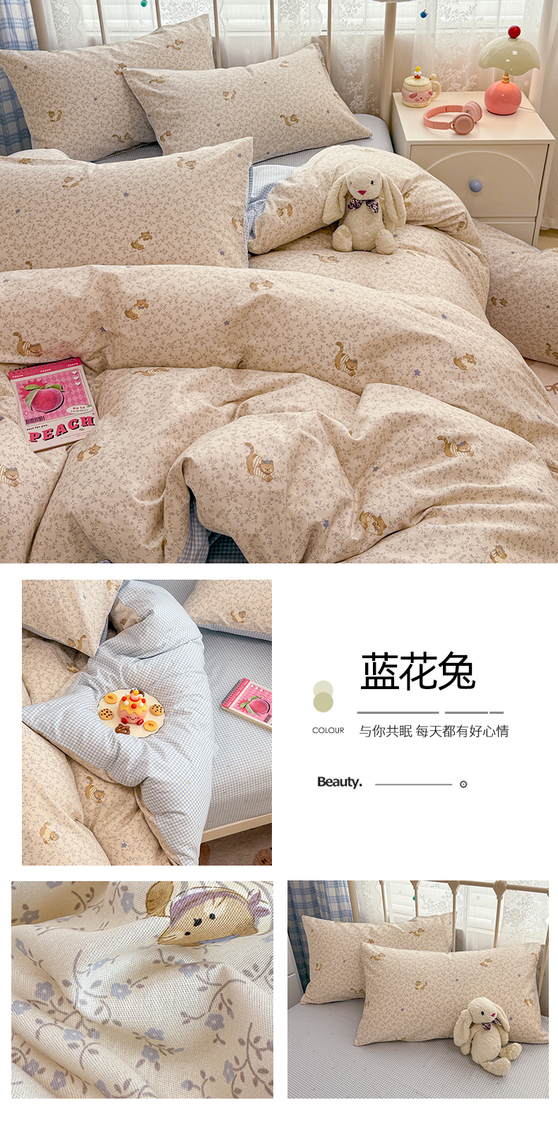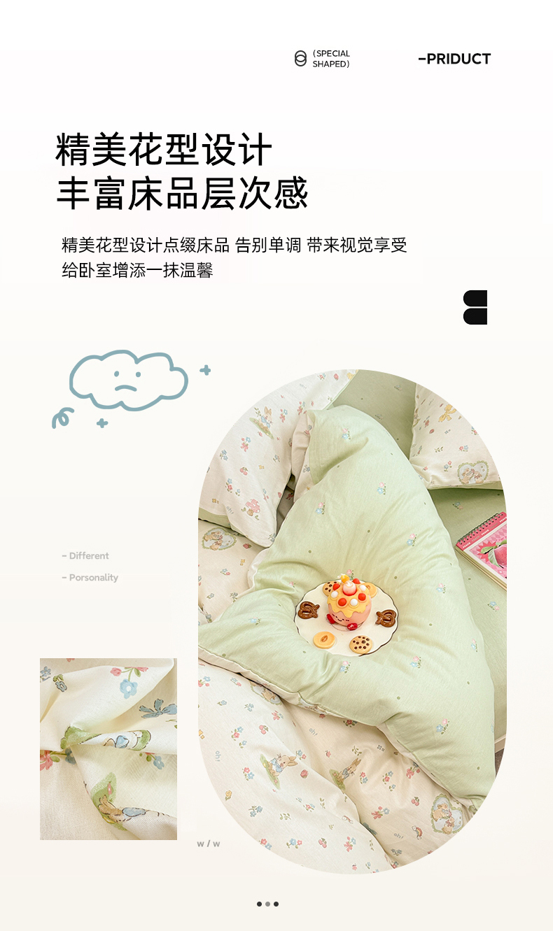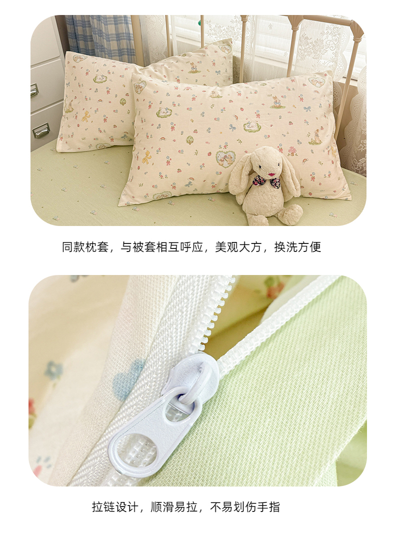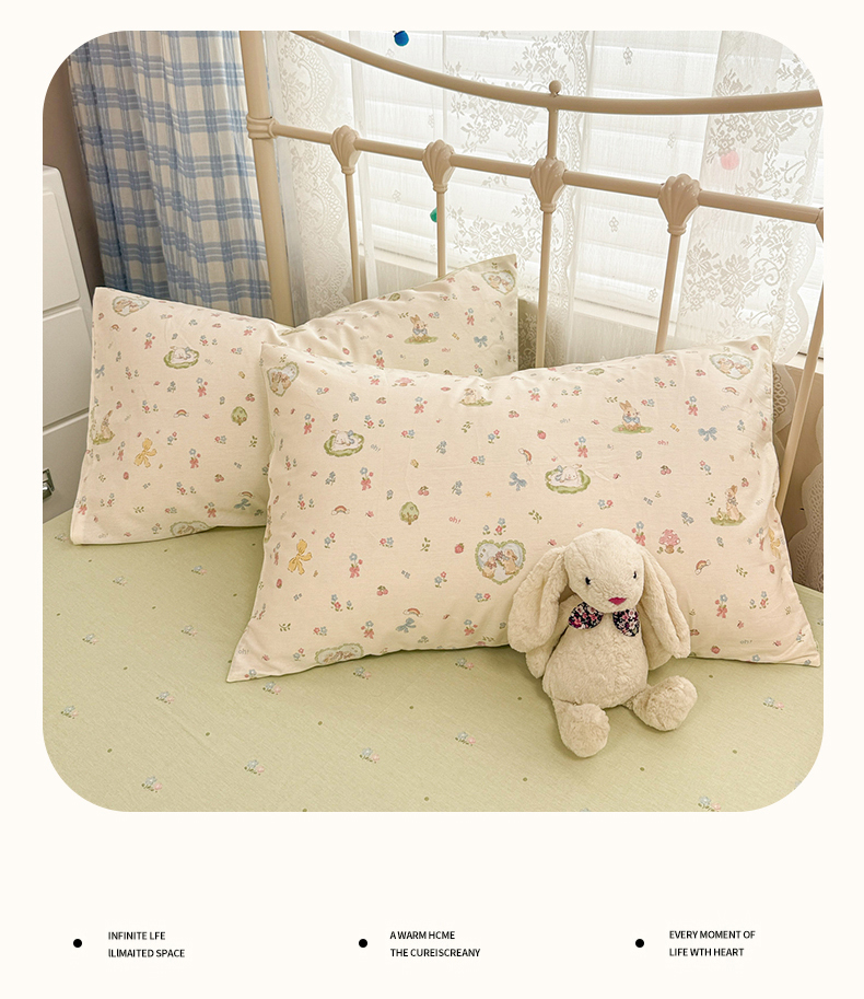 商品名称:简宜家居(朝初家纺) 2025新款12868全棉兔与花笺系列四件套 兔与花笺