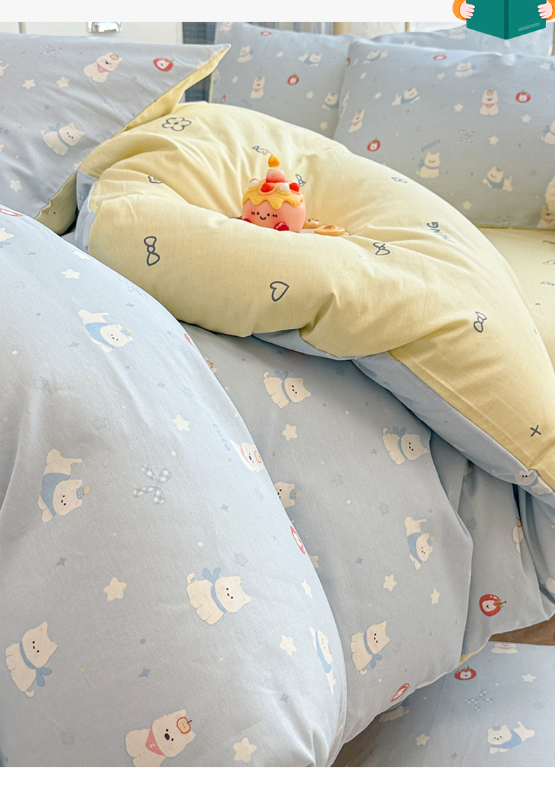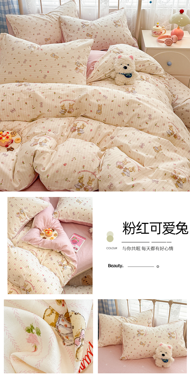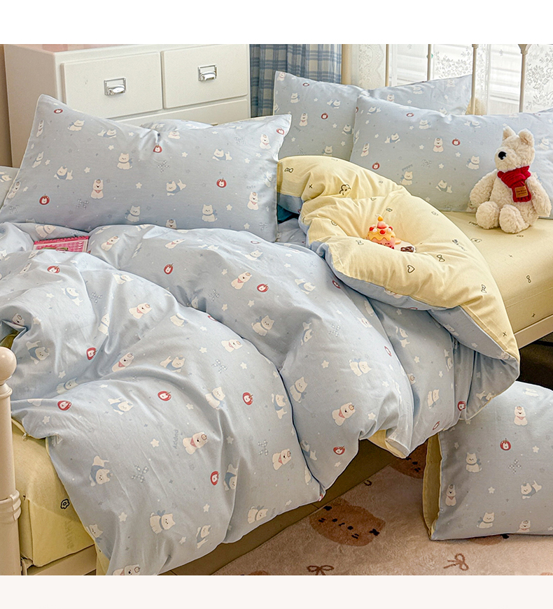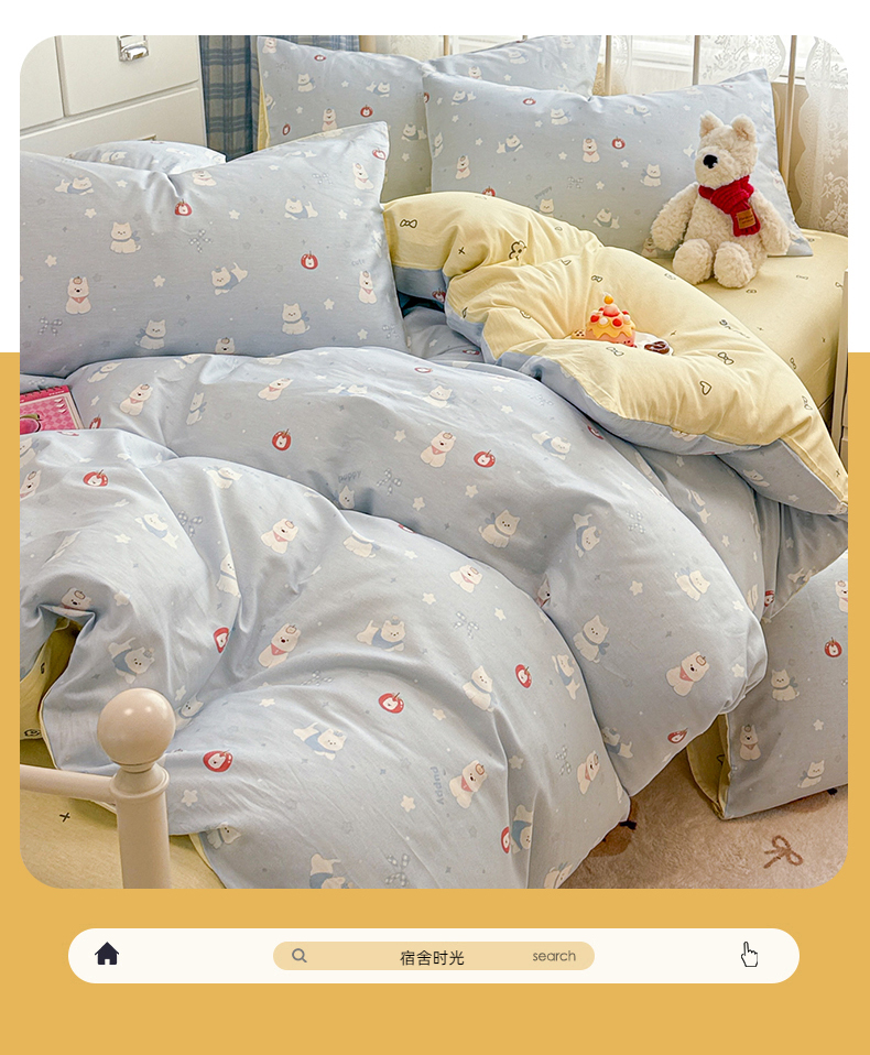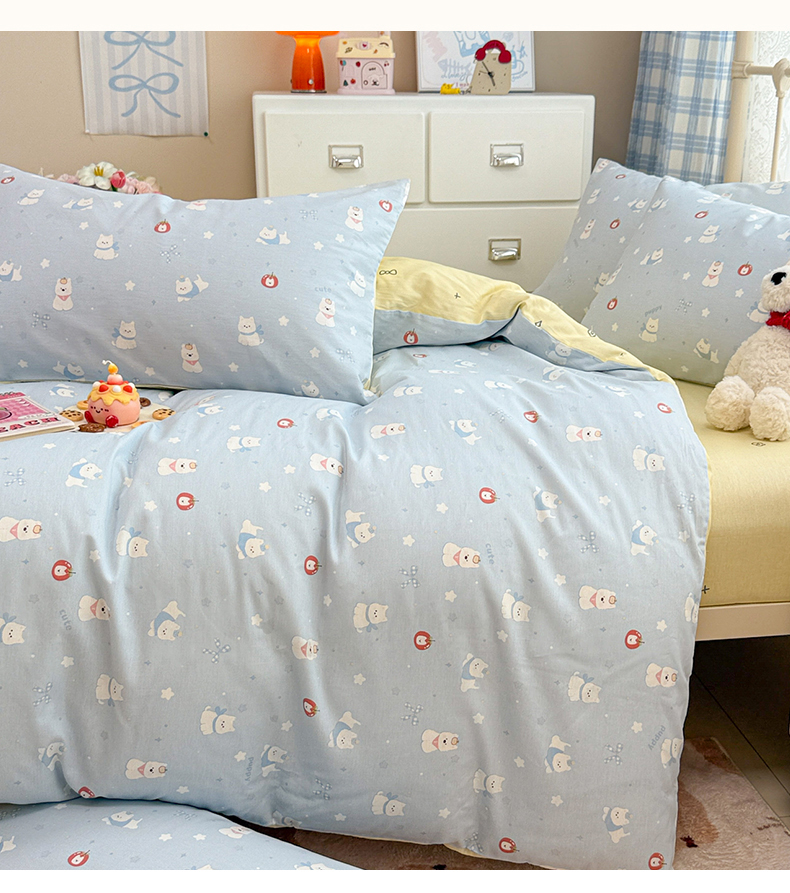简宜家居(朝初家纺) 2025新款12868全棉兔与花笺系列四件套 奶蓝熊语