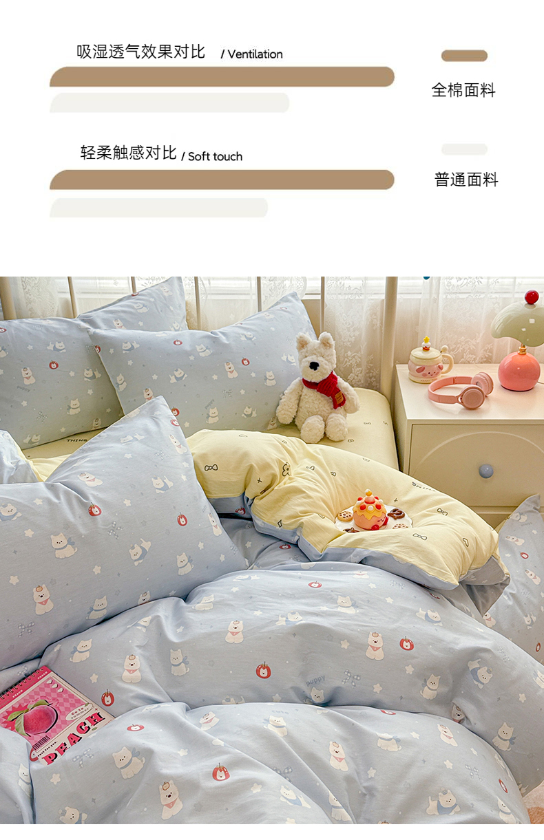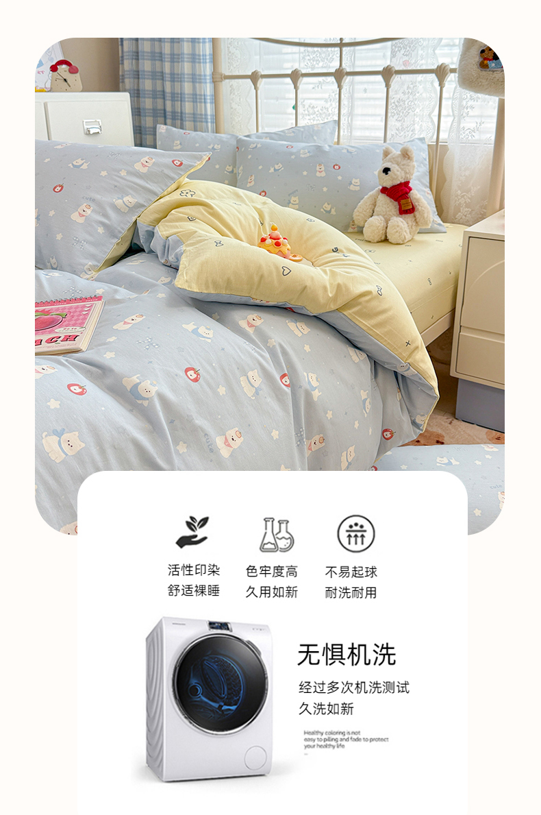 简宜2023新款13070纯棉全棉40支斜纹卡通小清新学生三件套四件套,花园兔,紫葡仙子,倩影粉,hello 萌熊,嘟嘟小车,简笔画,开心小黄鸭,梦幻城堡,浓情爱意