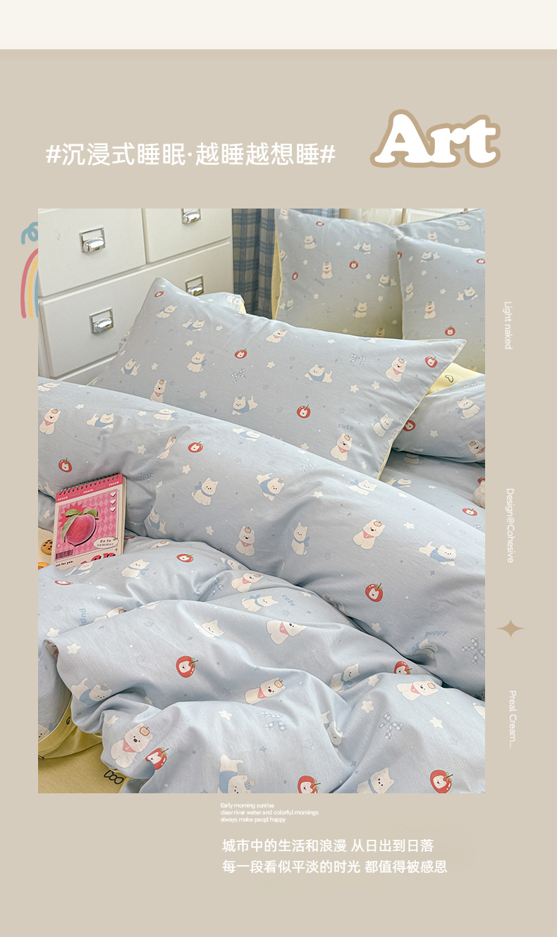 (总)简宜家居 2023新款小清新卡通纯棉全棉斜纹四件套,贩卖美好,蓝彩,蓝色心愿,梦享,奇妙农场,星月童话