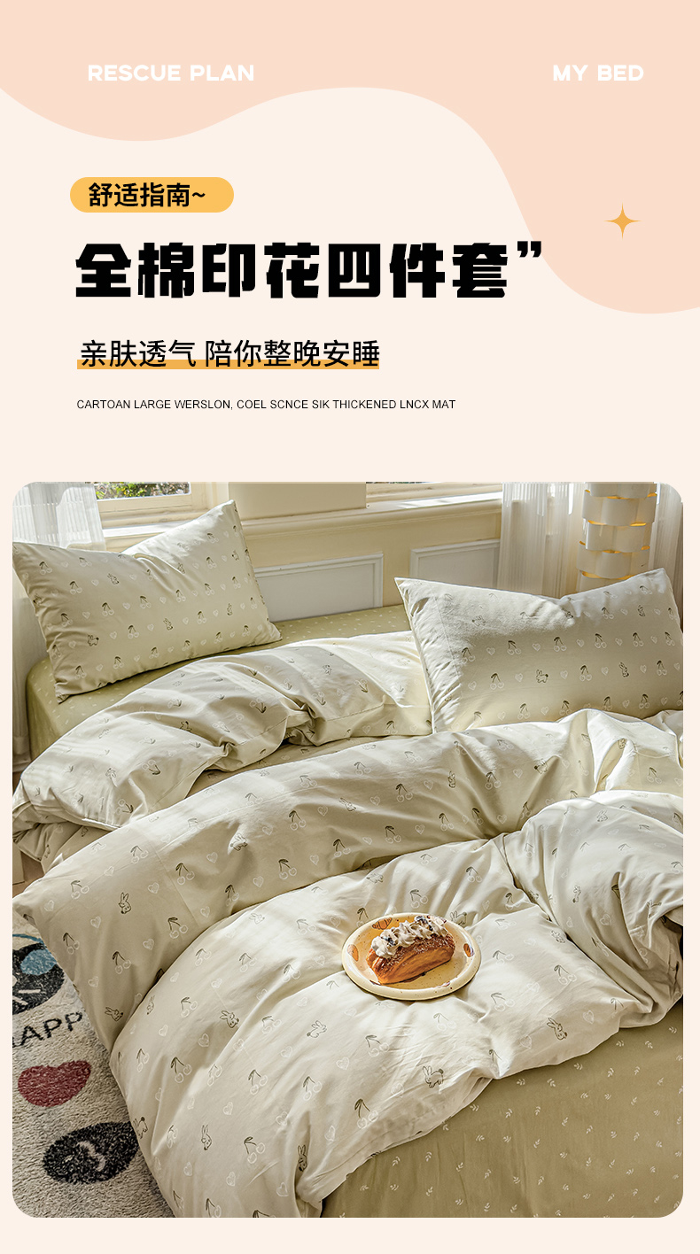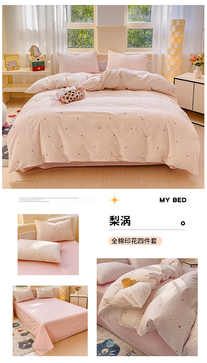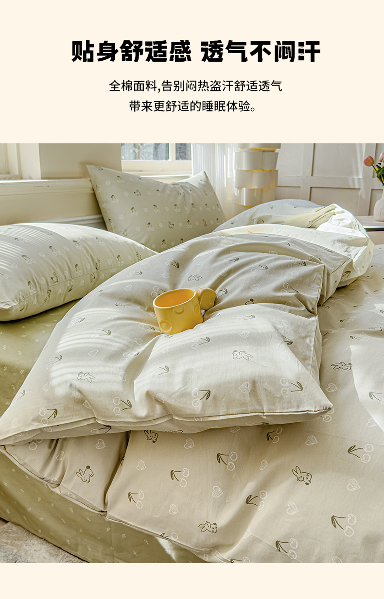 当前位置: 91家纺网 > 商品网购 > 床品套件 > 四件套 > 全棉普通四件套 > 感遇家纺 2026新款全棉纯棉印花13372四件套 暖樱-绿