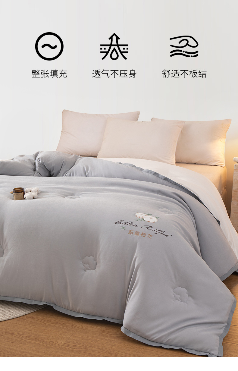 • 91家纺网 家纺一手货源 找家纺 (总)衿成家纺 2025新款如沐暖阳新疆棉花被子被芯,粉拼白,灰拼白,蓝拼白,绿拼白,绅士灰,棉芯(参考)