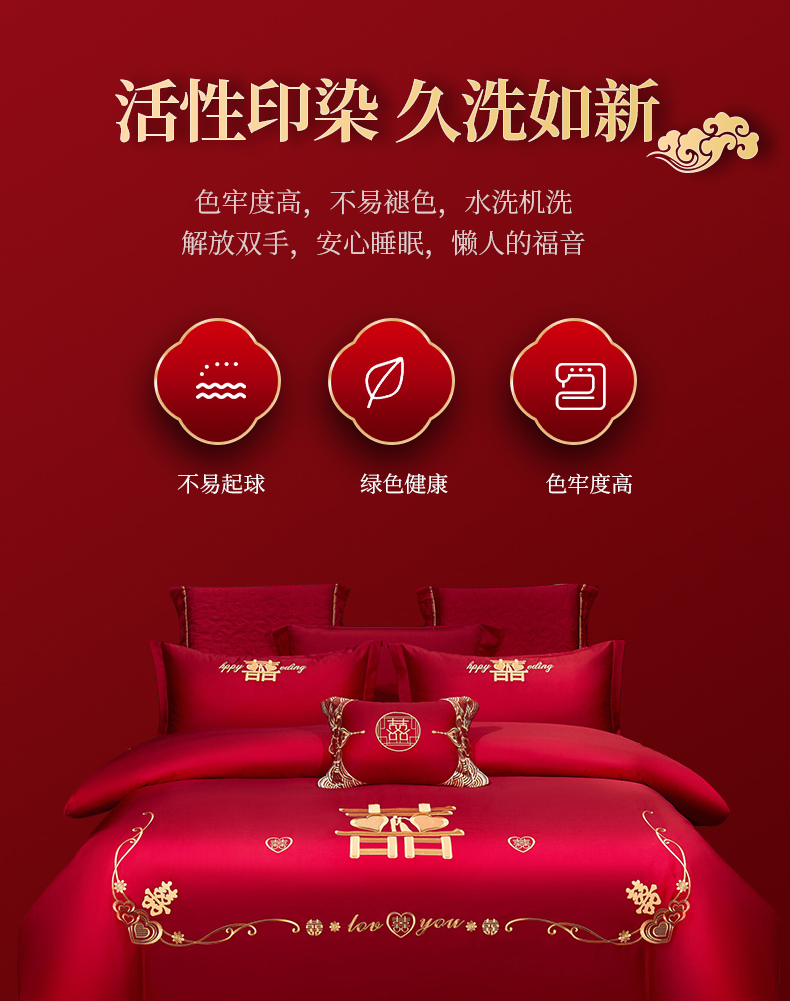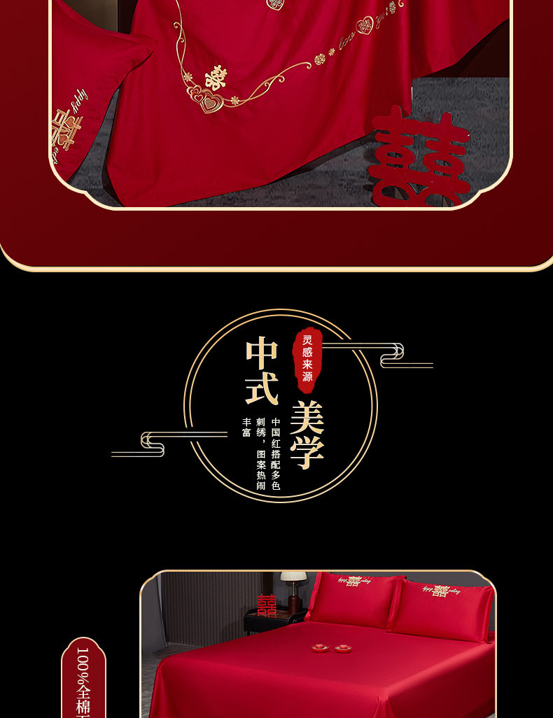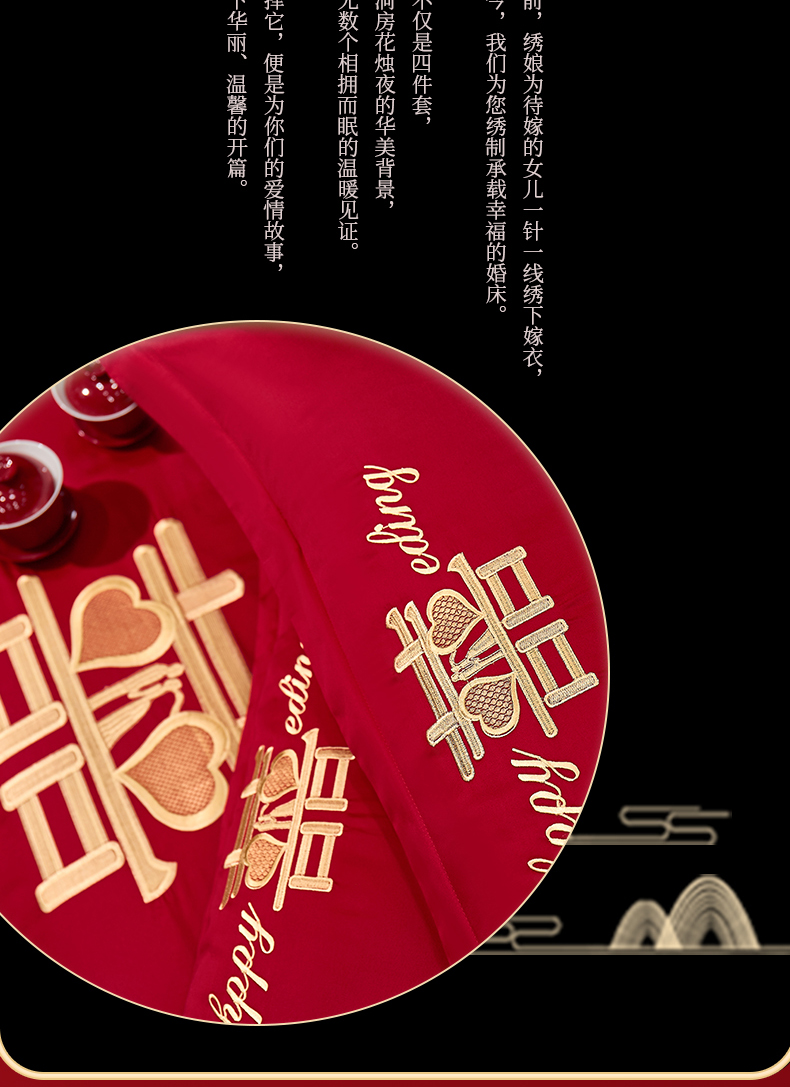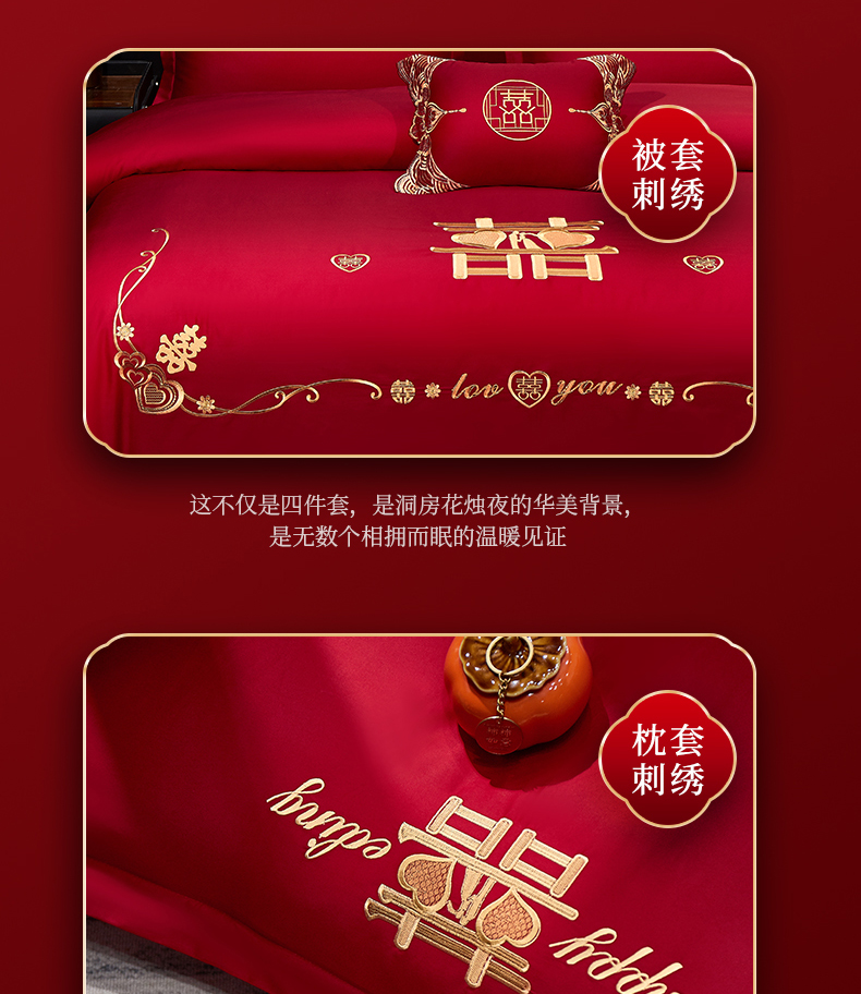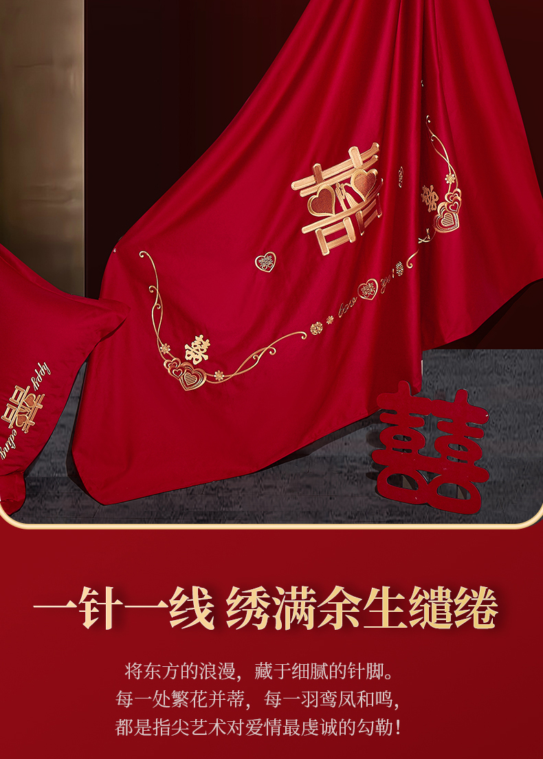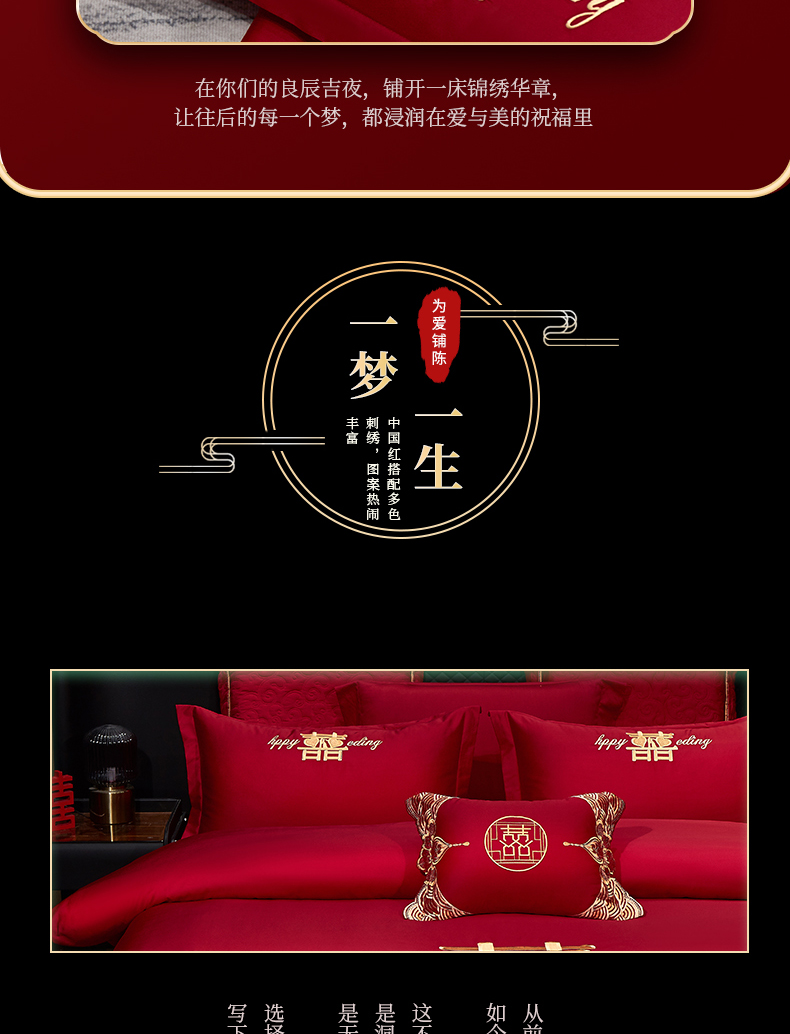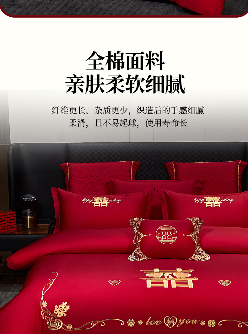 (总)浩情国际婚庆供货中心 2026新款100%全棉纯棉新中式刺绣大红结婚婚庆四件套多件套,HQ-百年好合,HQ-情投意合,HQ-幸福美满,HQ-心囍(金),HQ-囍结良缘,HQ-大囍事