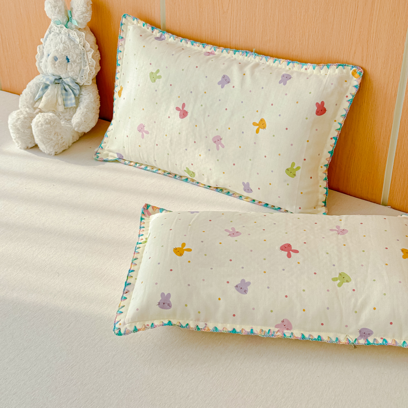 (总)金丝鸟家纺 2026新款全棉双层纱贝壳边款枕套多规格儿童枕套,彩色玻璃球,彩色小兔子,海底乐园 兰,拉条狗,帽子狗 绿,木马旧梦,奶味猫町 粉,暖系派对,七彩方格,千禧少女 粉,芋泥兔兔 兰,紫色心情