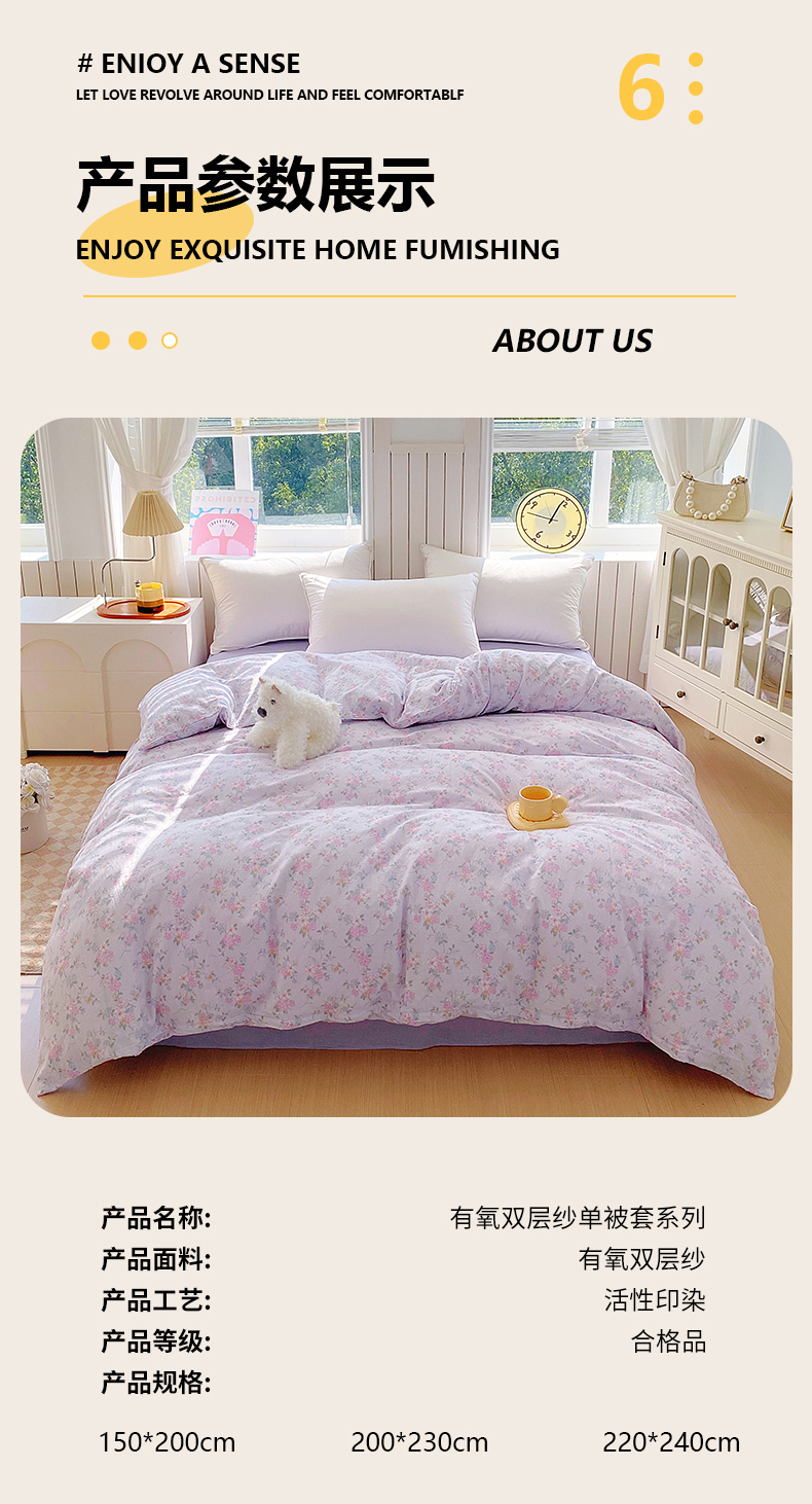 商品名称:春皖家纺 2026新款A类全棉有氧双层纱印花四件套单品系列-单被套 雾色里德
