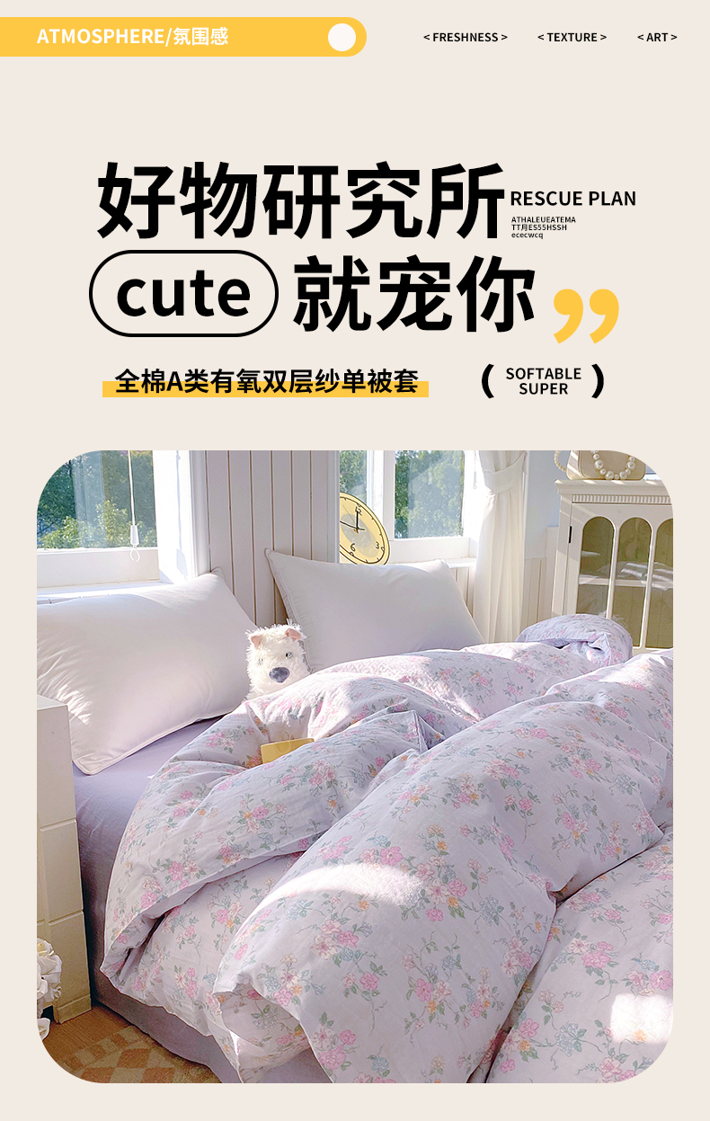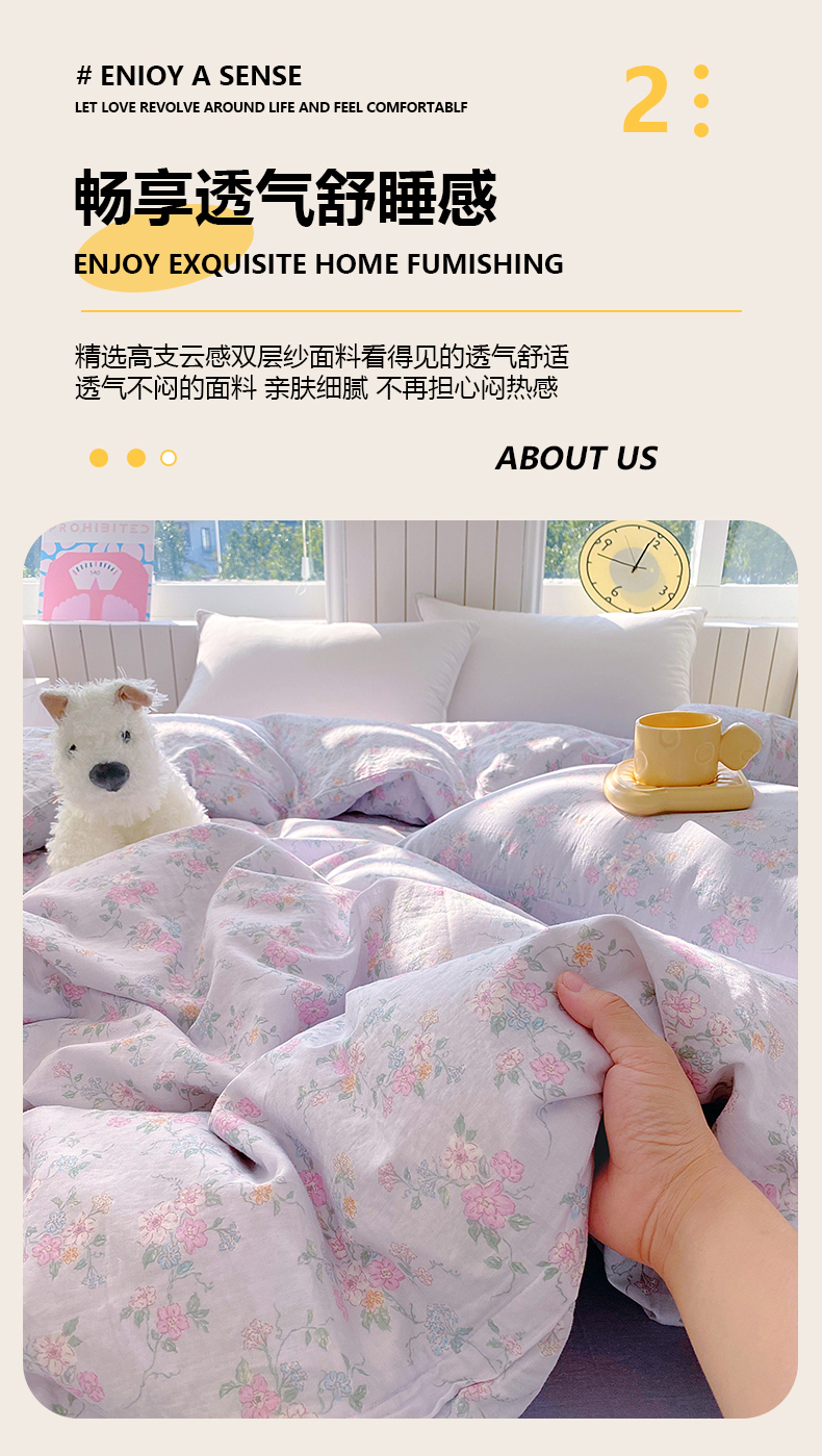 (总)春皖家纺 2026新款A类全棉有氧双层纱印花四件套单品系列-四件套,桂语兰庭,花织,雾染玫瑰,晴丝一缕,暮春,旧梦朝花,青茵,花町,雾色里德,雾棕