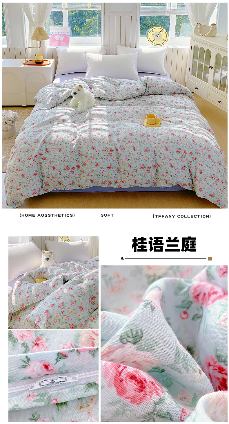 (总)春皖家纺 2026新款A类全棉有氧双层纱印花四件套单品系列-单被套,桂语兰庭,旧梦朝花,雾染玫瑰,晴丝一缕,暮春,青茵,花织,花町,雾色里德,雾棕