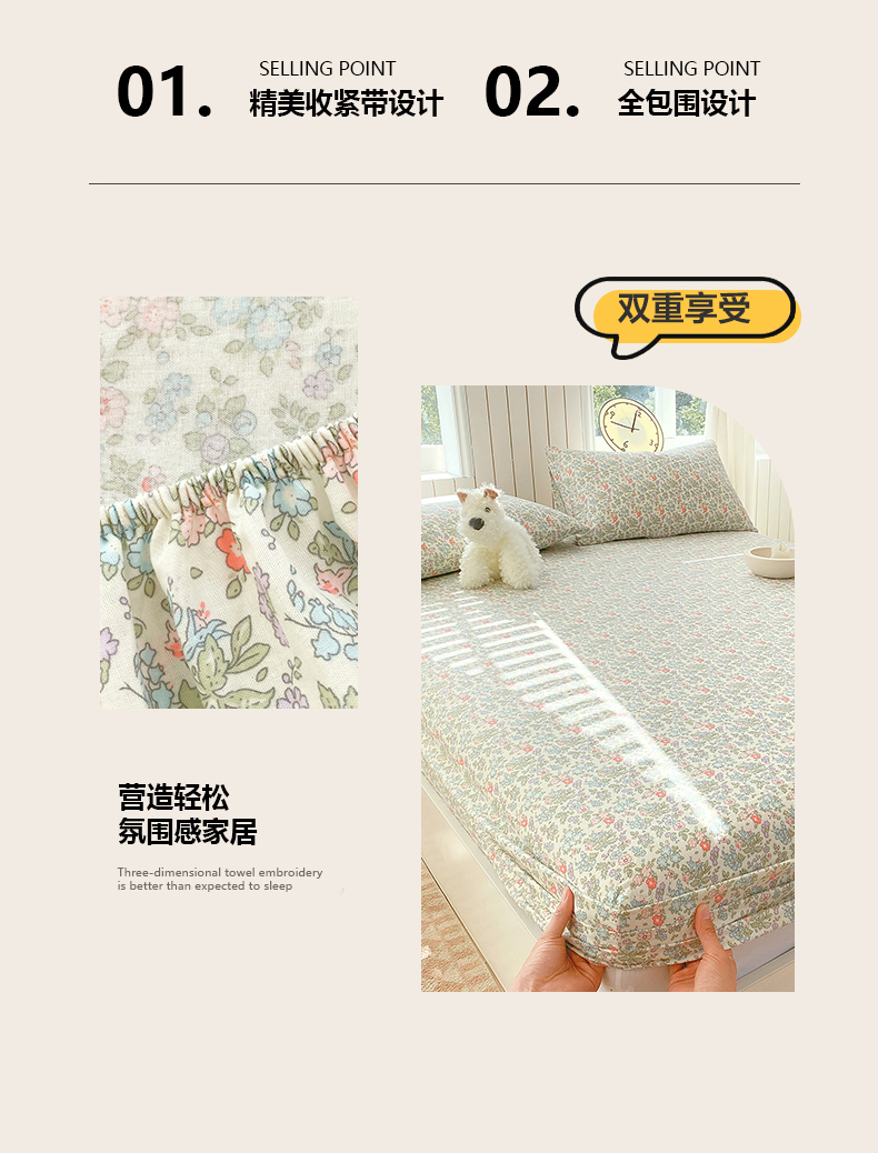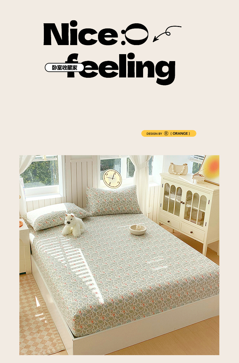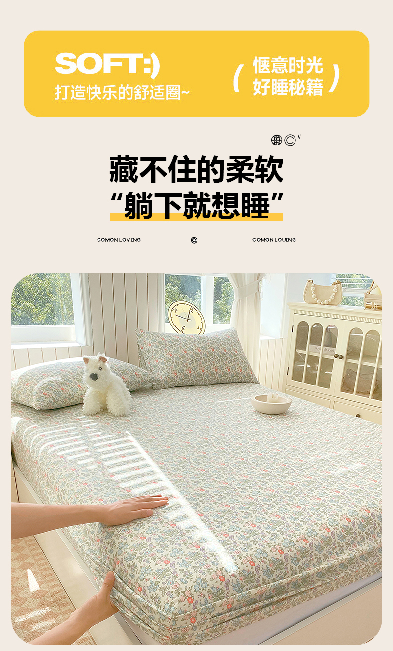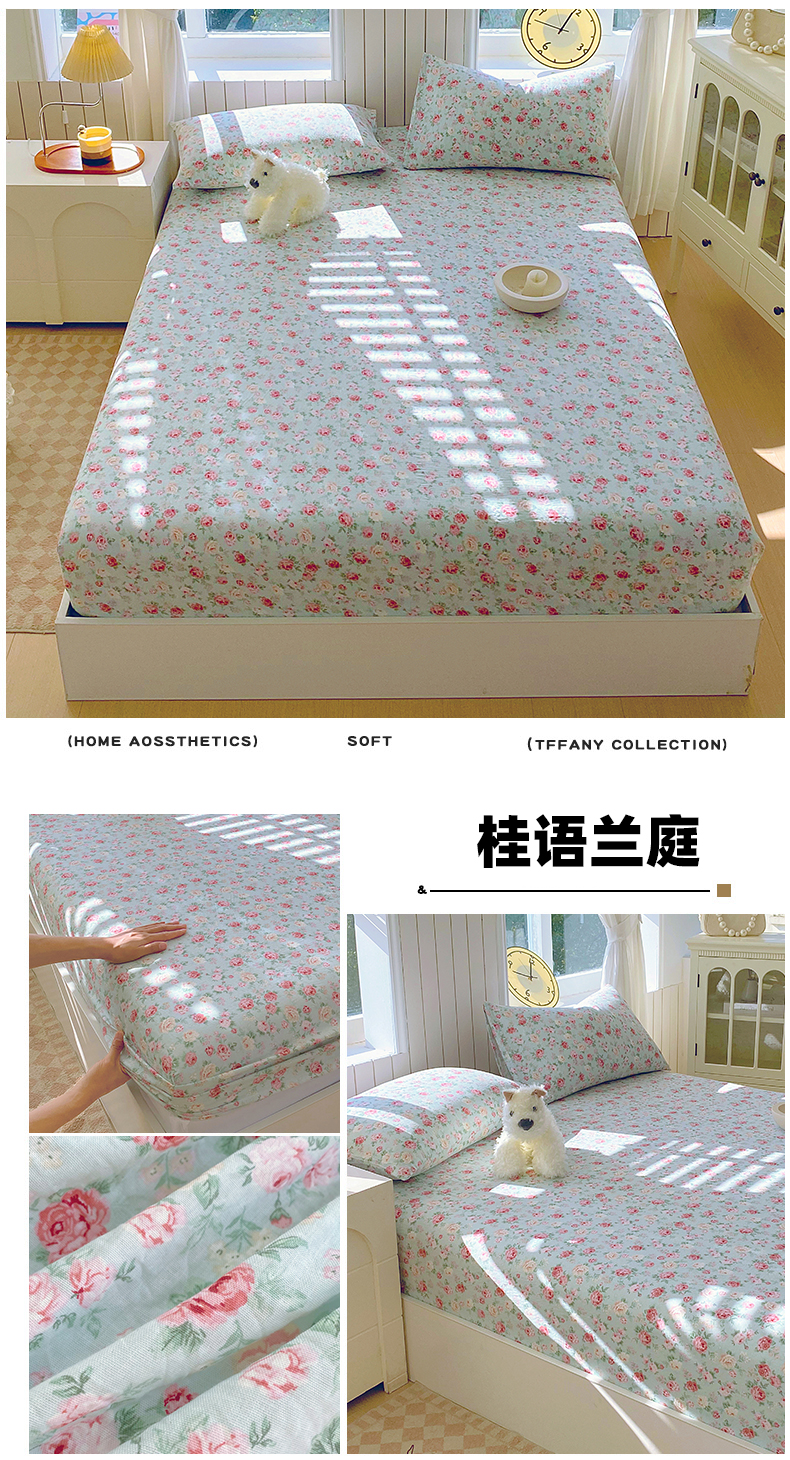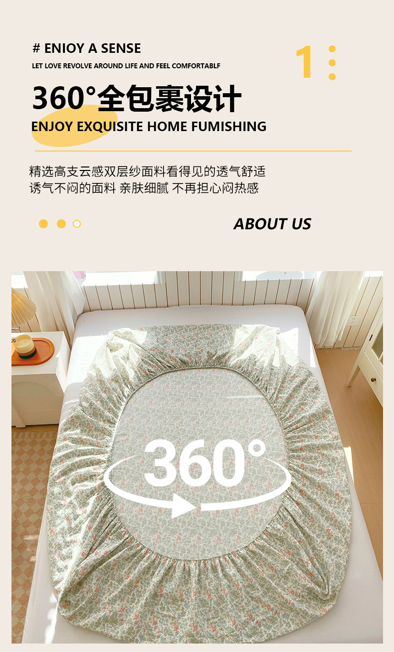 春皖家纺 2026新款A类全棉有氧双层纱印花四件套单品系列-单床笠 花町