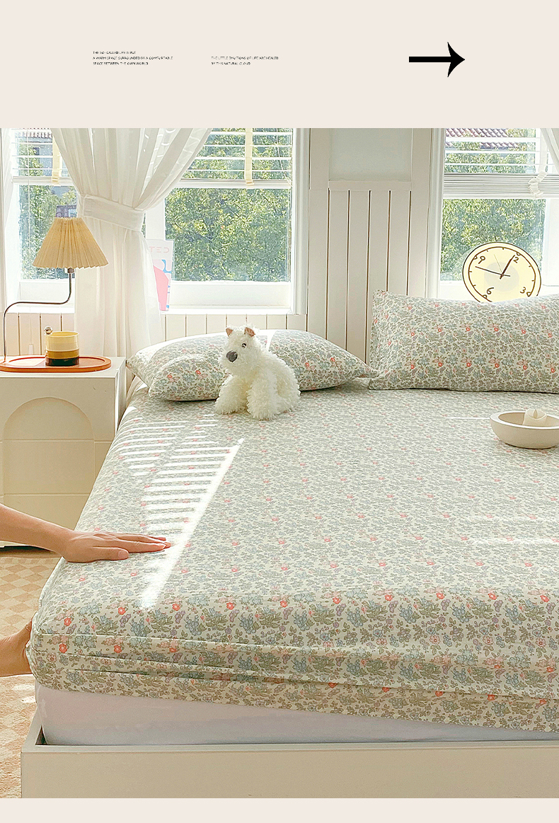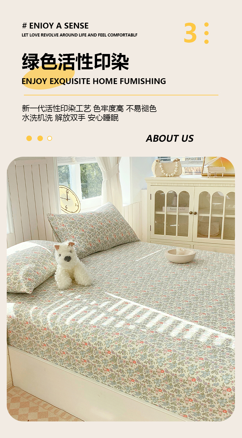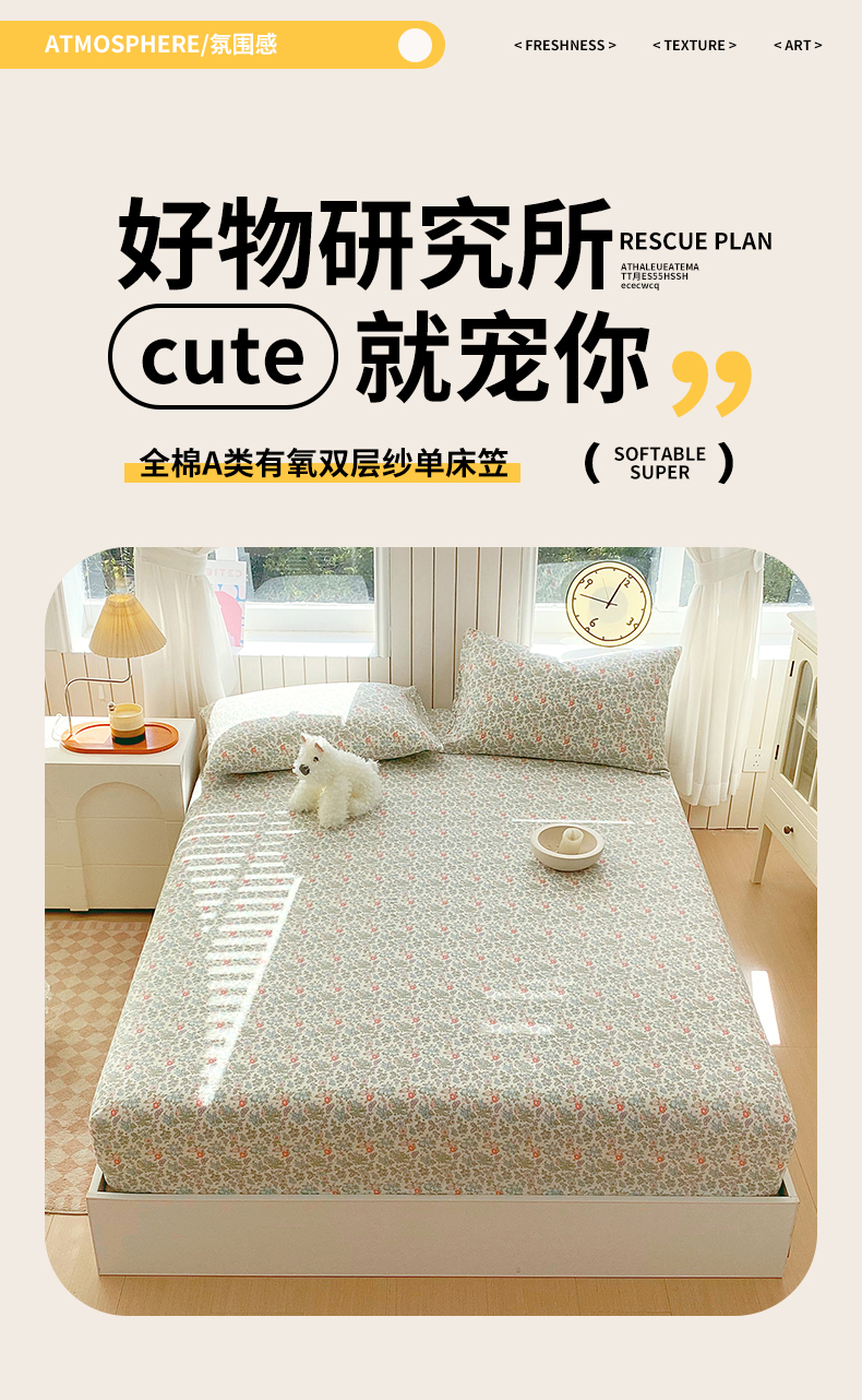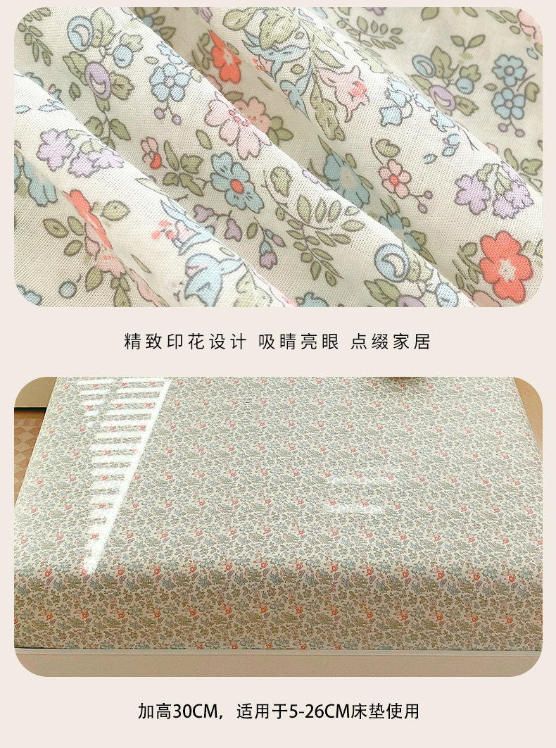 商品名称:春皖家纺 2026新款A类全棉有氧双层纱印花四件套单品系列-单床笠 花町