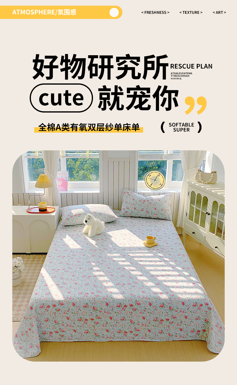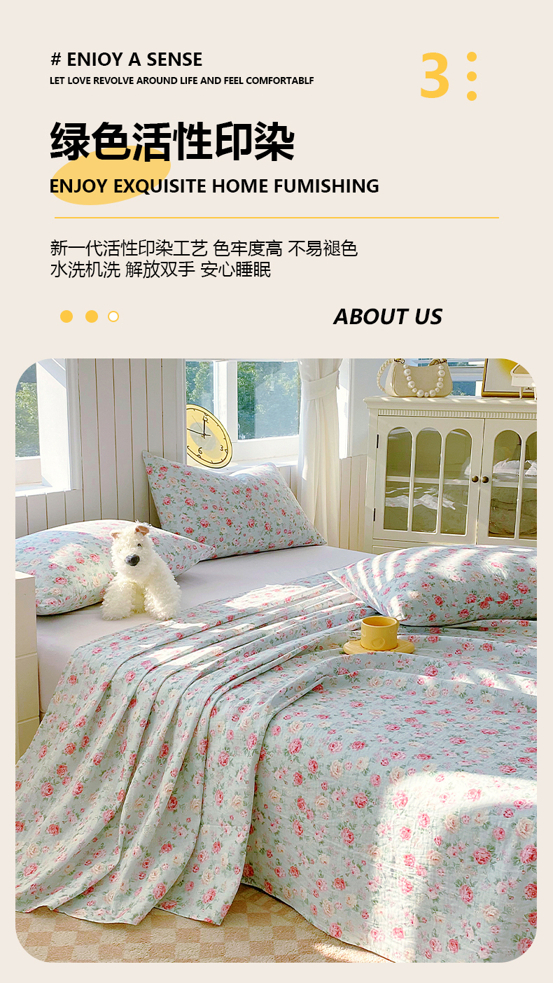 (总)春皖家纺 2026新款A类全棉有氧双层纱印花四件套单品系列-单床单