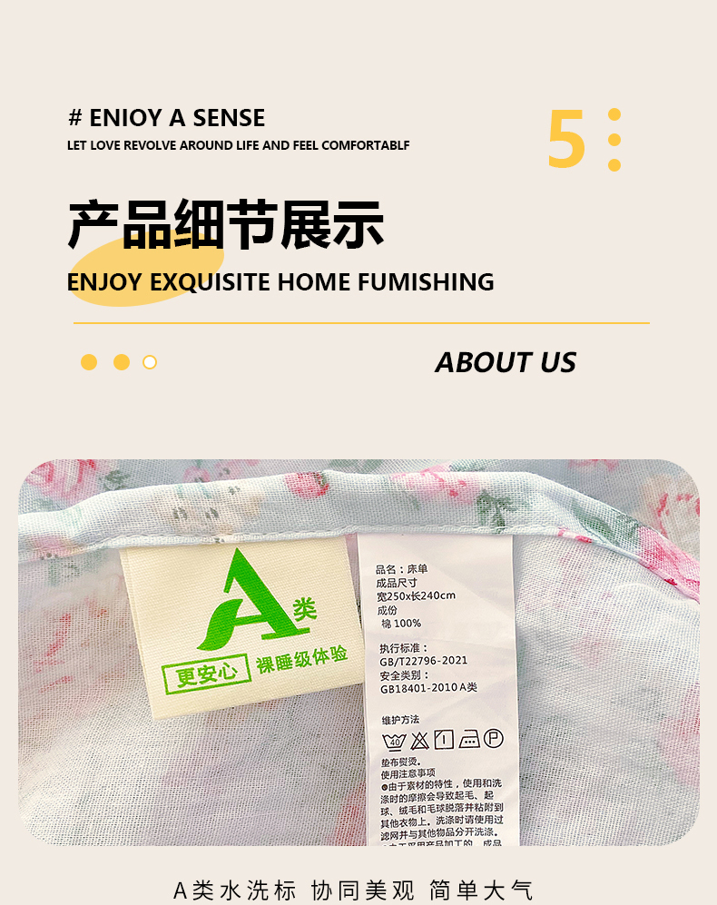 商品名称:(总)春皖家纺 2026新款A类全棉有氧双层纱印花四件套单品系列-单床单