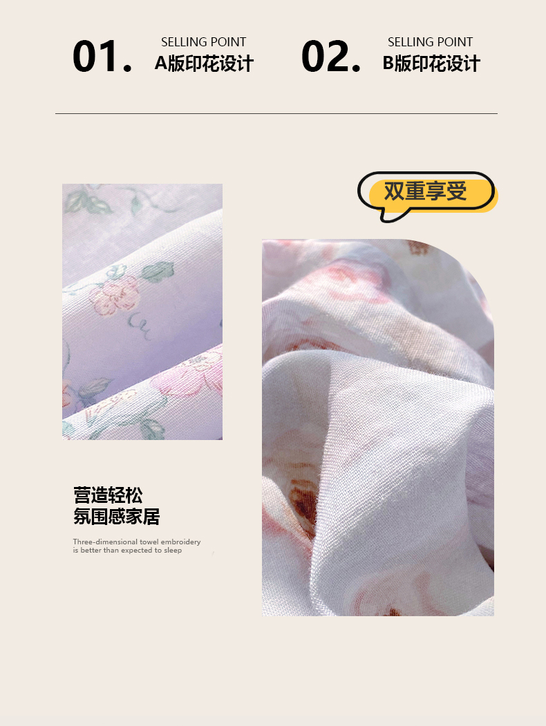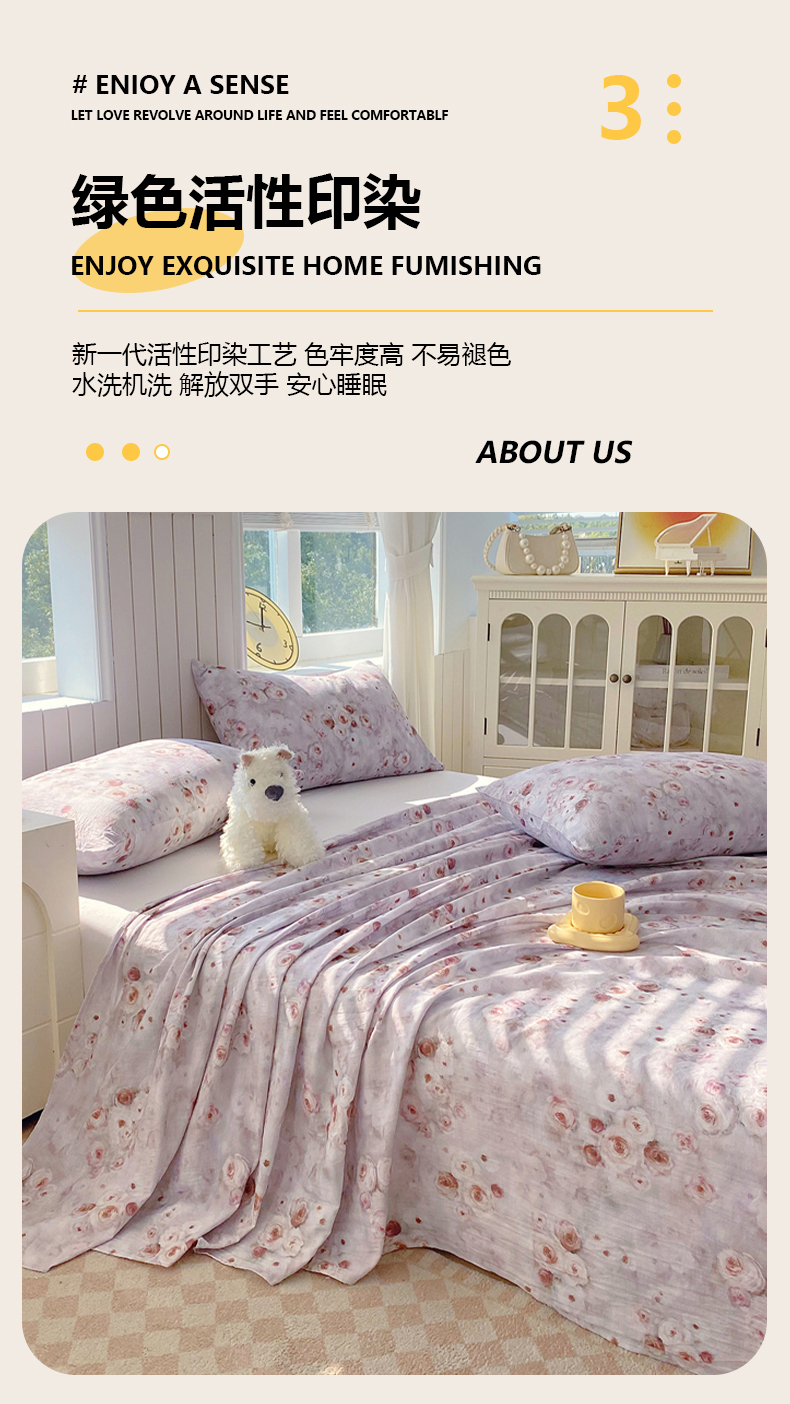 (总)春皖家纺 2026新款A类全棉有氧双层纱印花四件套单品系列-四件套,桂语兰庭,花织,雾染玫瑰,晴丝一缕,暮春,旧梦朝花,青茵,花町,雾色里德,雾棕