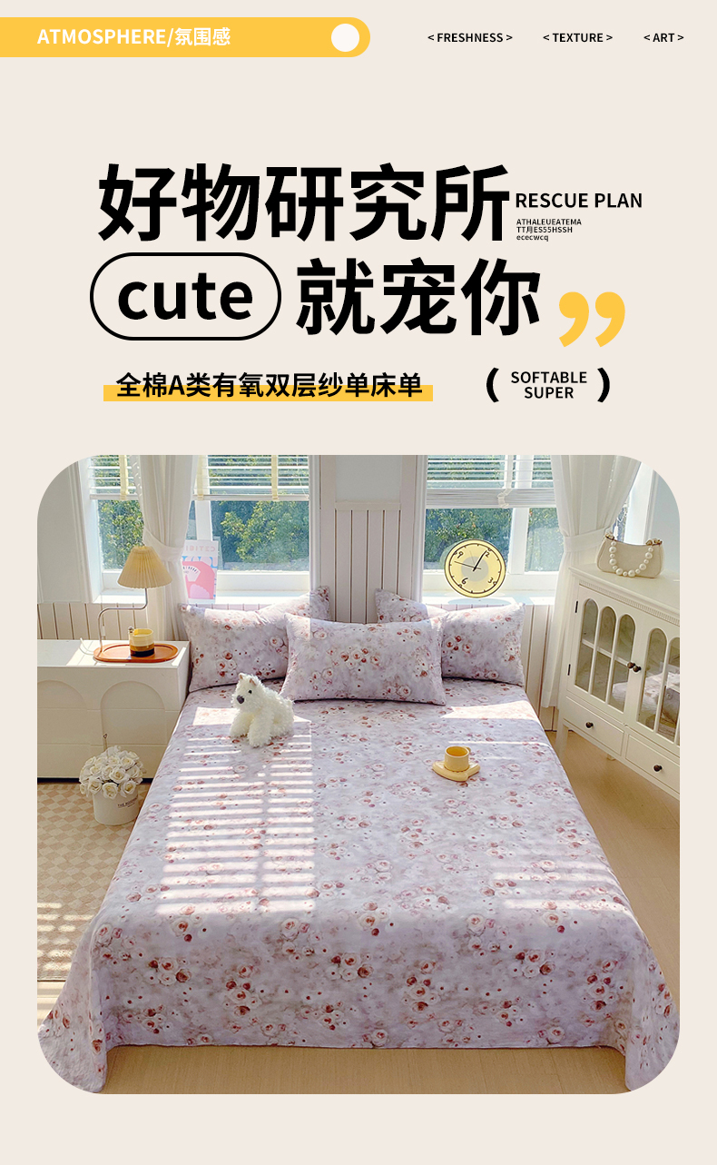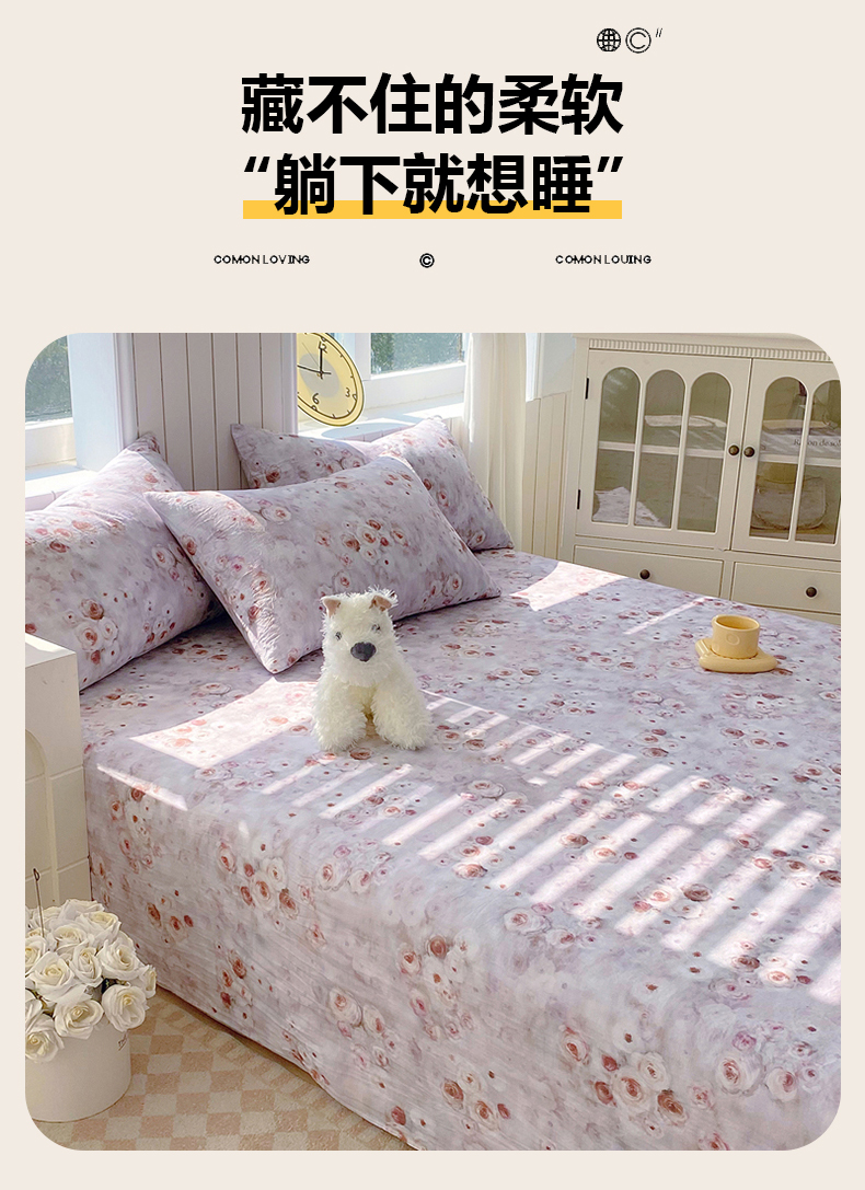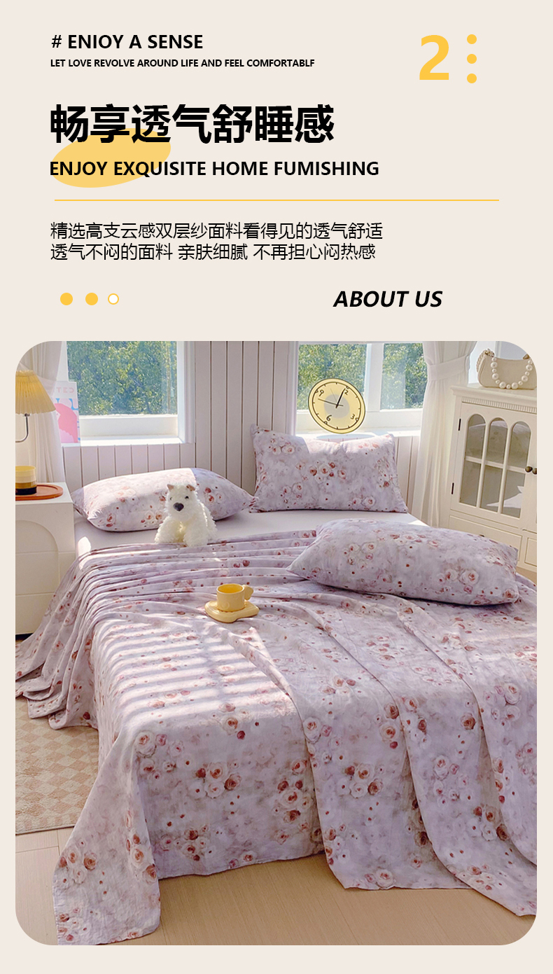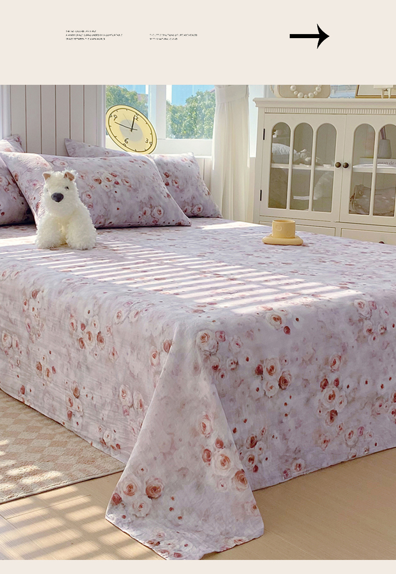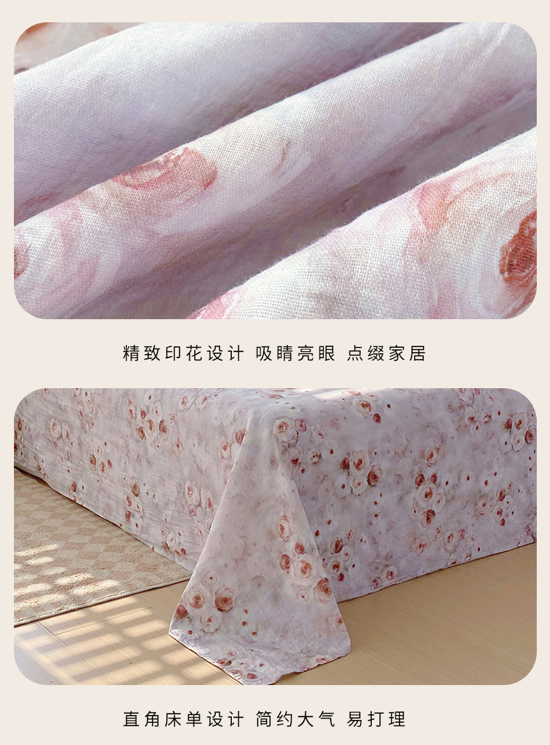 (总)春皖家纺 2026新款A类全棉有氧双层纱印花四件套单品系列-单床单,桂语兰庭,暮春,雾染玫瑰,晴丝一缕,青茵,花町,旧梦朝花,花织,雾色里德,雾棕