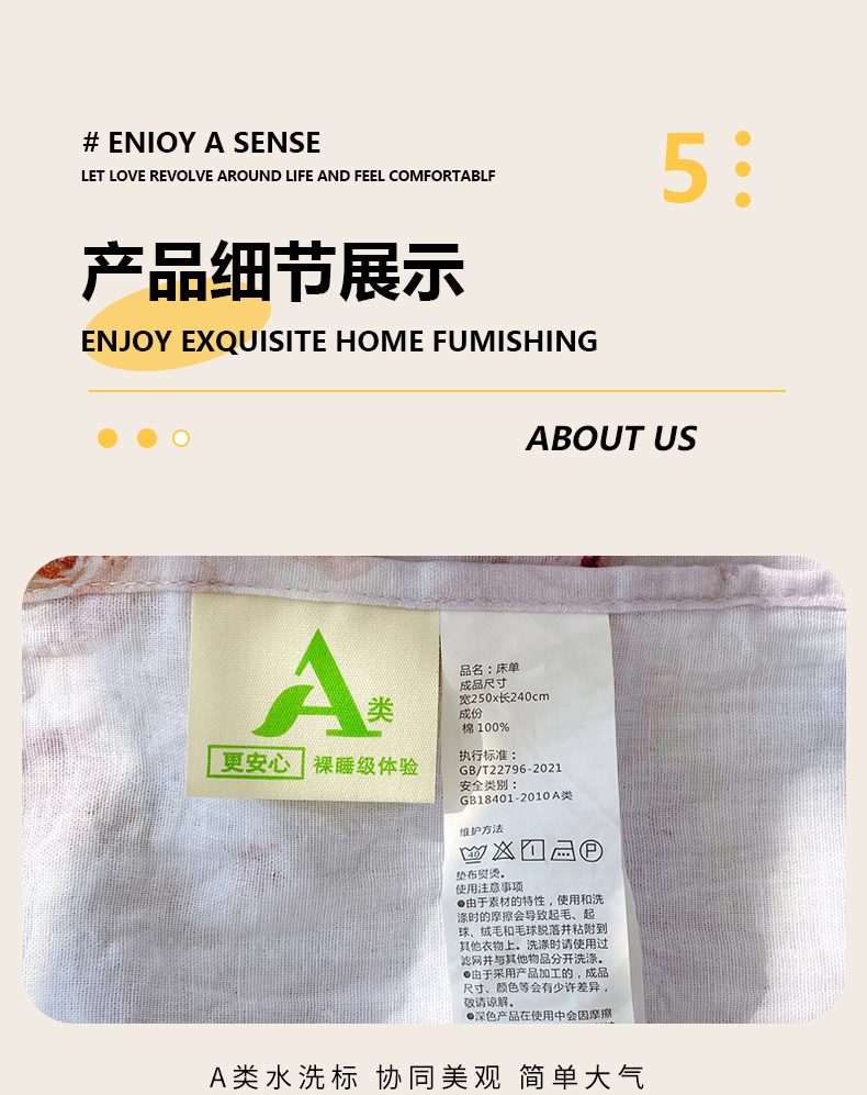 商品名称:春皖家纺 2026新款A类全棉有氧双层纱印花四件套单品系列-单床单 雾棕