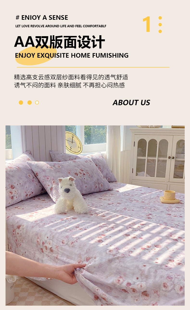 (总)春皖家纺 2026新款A类全棉有氧双层纱印花四件套单品系列-单床笠,桂语兰庭,暮春,雾染玫瑰,晴丝一缕,青茵,花町,旧梦朝花,花织,雾色里德,雾棕