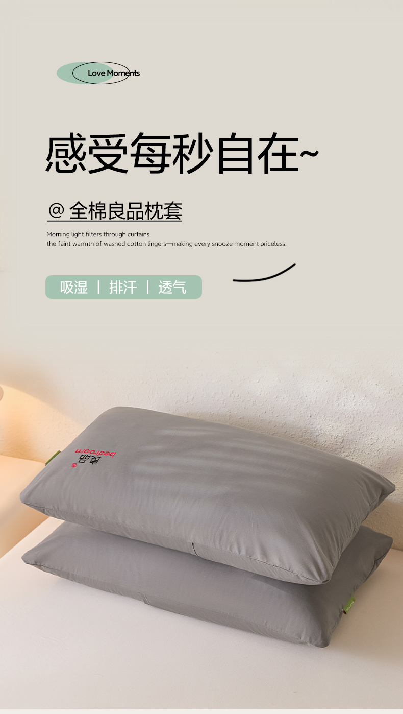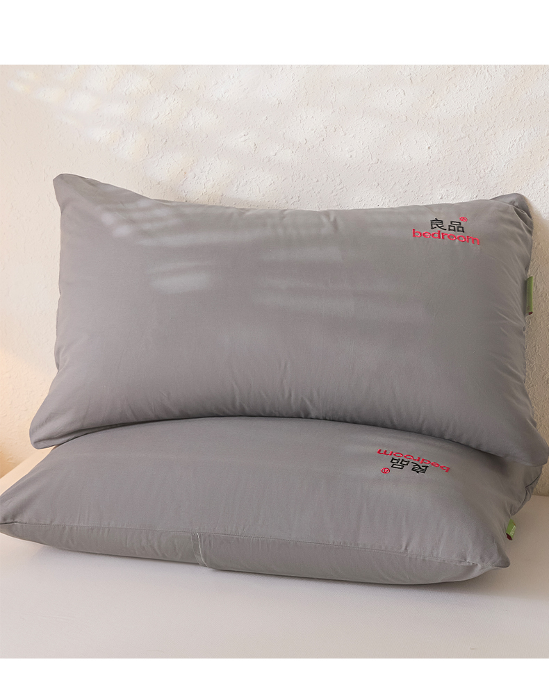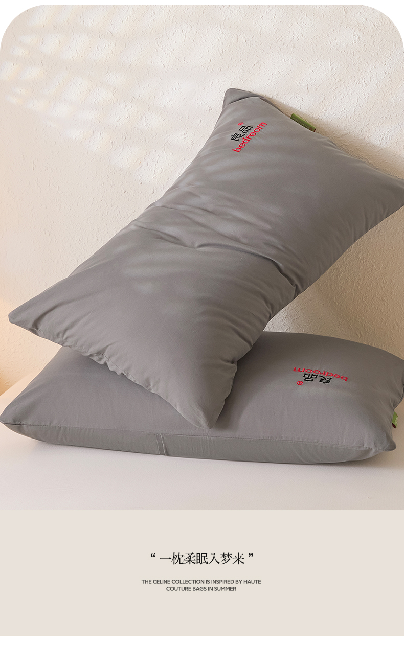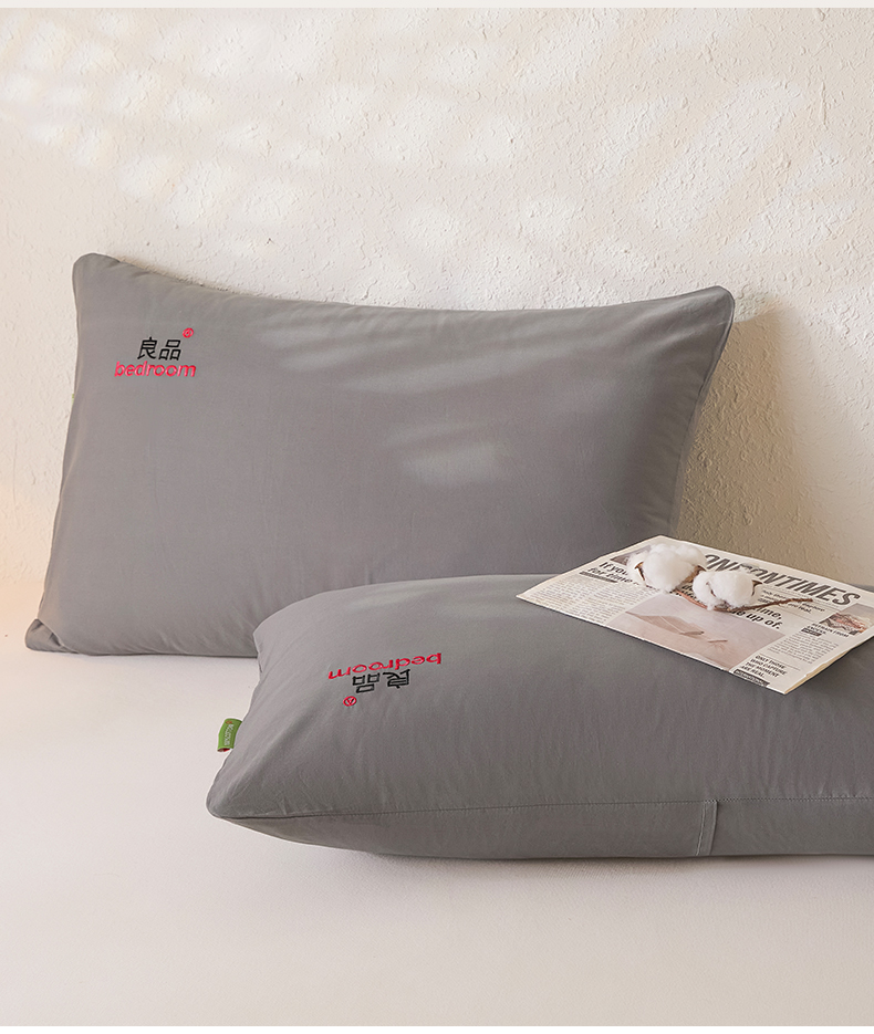 芬晴家纺 2026新款条纹纯色良品刺绣枕套 纯色-岩灰
