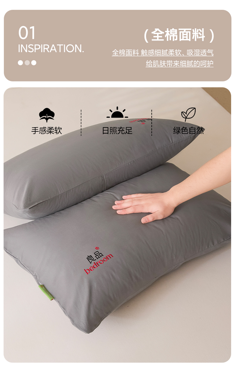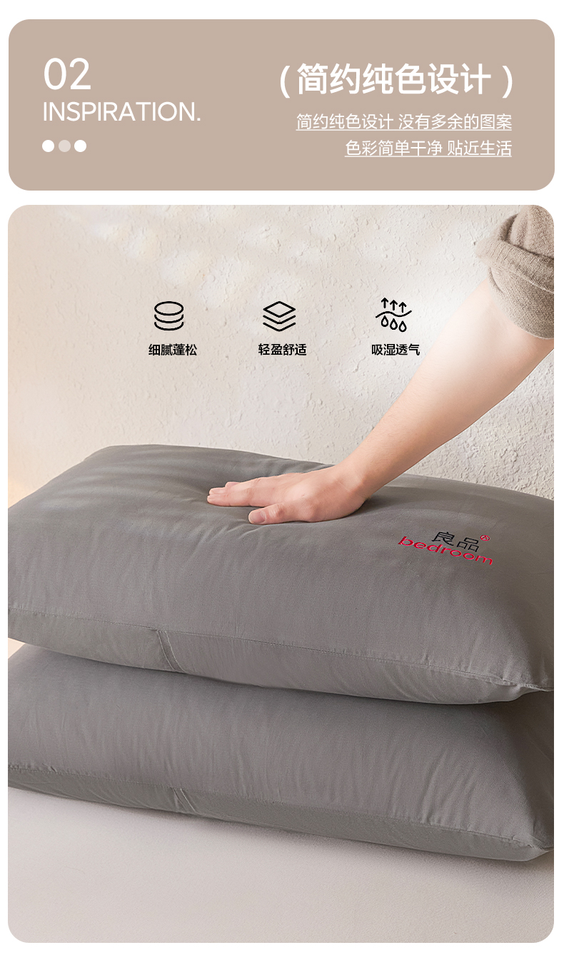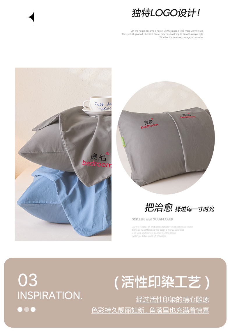 芬晴家纺 2026新款条纹纯色良品刺绣枕套 纯色-岩灰
