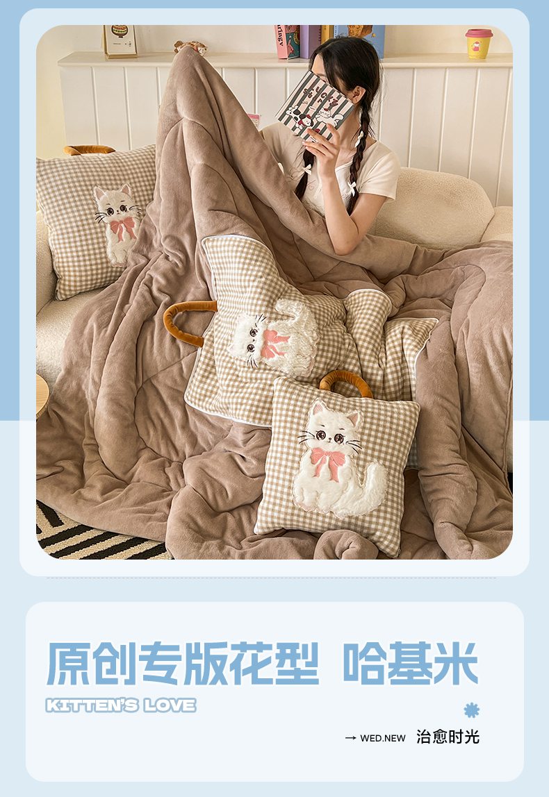 (总)番茄+ 2025新款牛奶绒哈基米抱枕被,哈基米-波点粉,哈基米-波点紫,哈基米-格粉,哈基米-格黑,哈基米-格咖,哈基米-格蓝,哈基米-格紫,组合图-外景