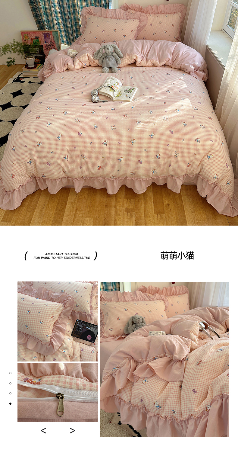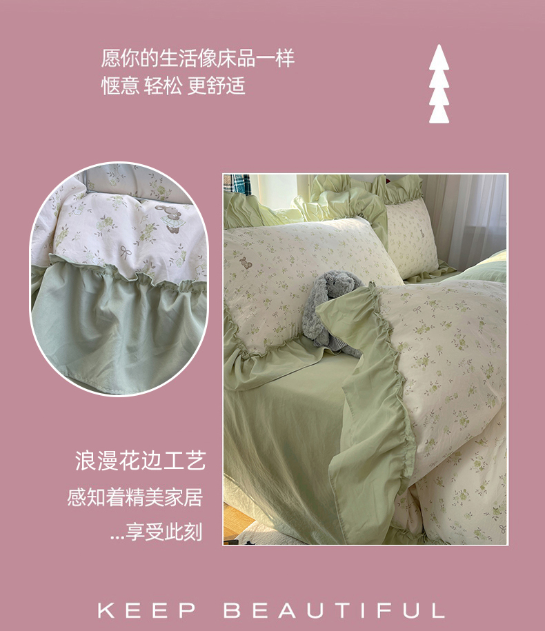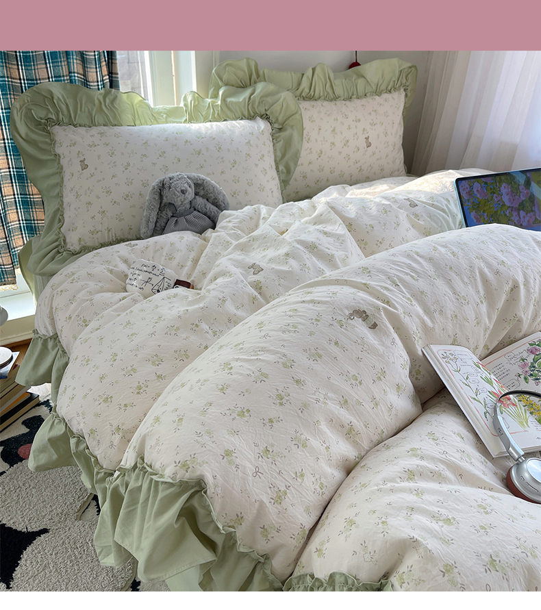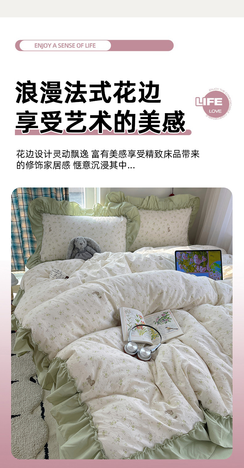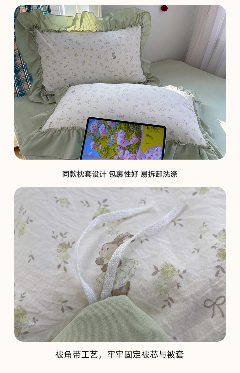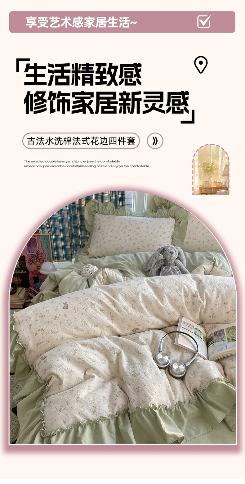 当前位置: 91家纺网 > 商品网购 > 床品套件 > 四件套 > 水洗棉四件套 > 凯洛奇 2026新款A类仿棉四件套古法水洗棉法式工艺花边套件(提供买家秀) 林间小兔