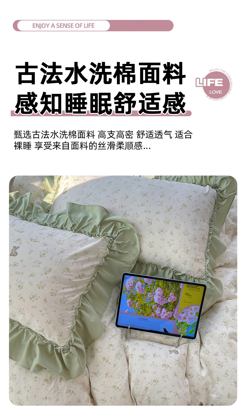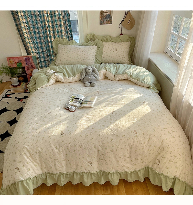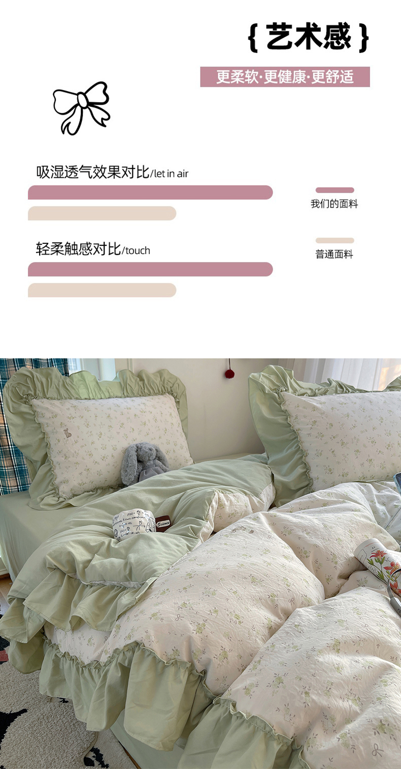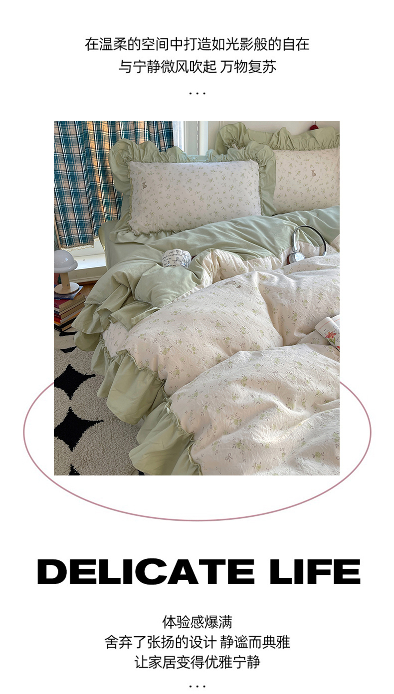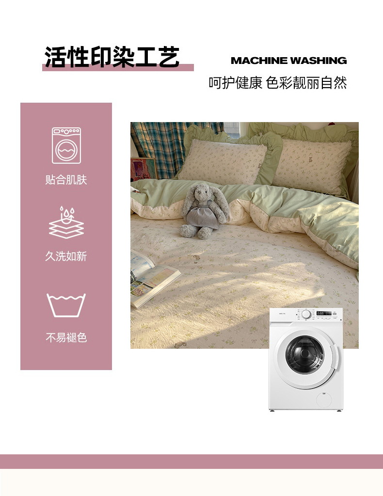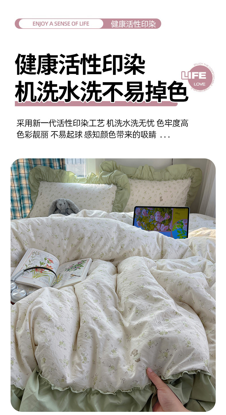 当前位置: 91家纺网 > 商品网购 > 床品套件 > 四件套 > 水洗棉四件套 > 凯洛奇 2026新款A类仿棉四件套古法水洗棉法式工艺花边套件(提供买家秀) 林间小兔