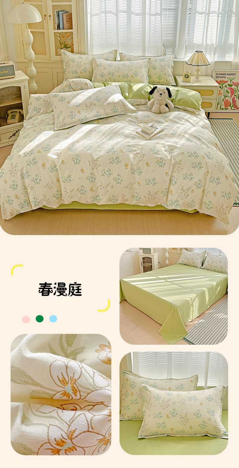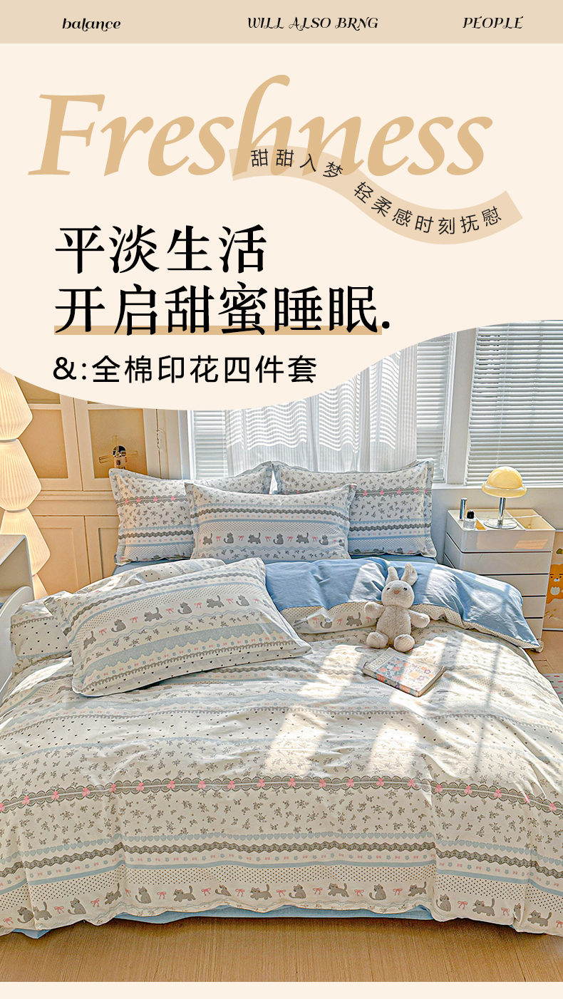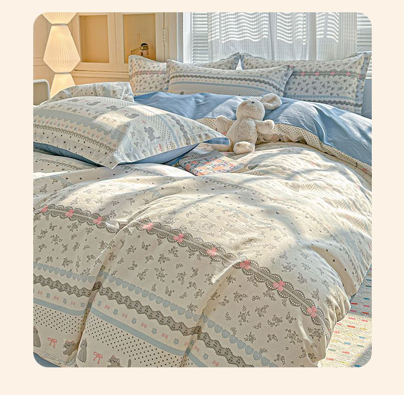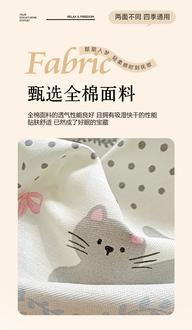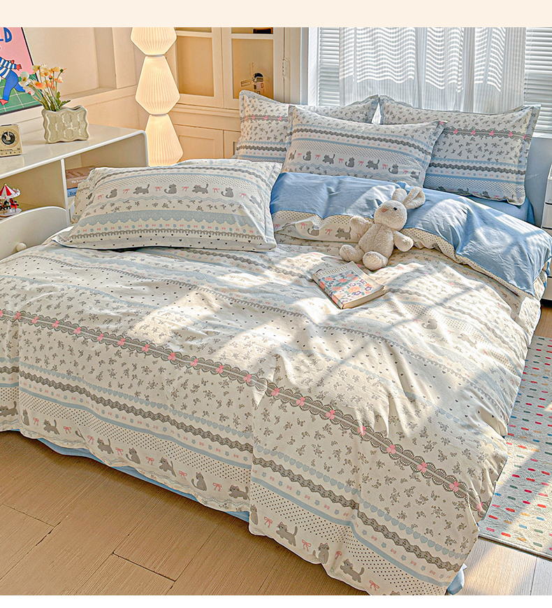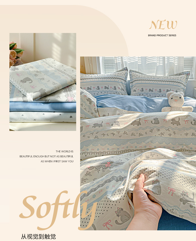 当前位置: 91家纺网 > 商品网购 > 床品套件 > 四件套 > 全棉普通四件套 > 春雨家居 2026新款全棉纯棉花ins减龄可爱小清新四件套 小猫时光-兰