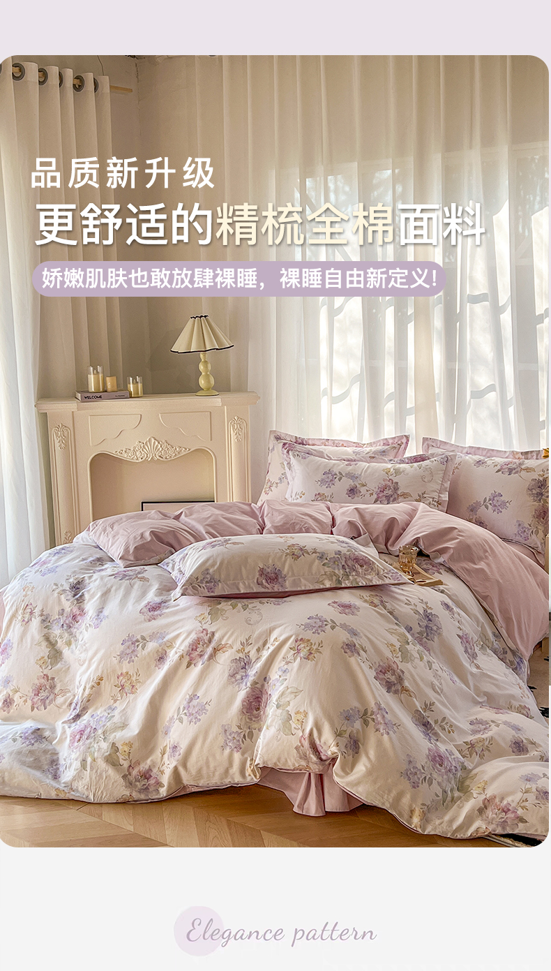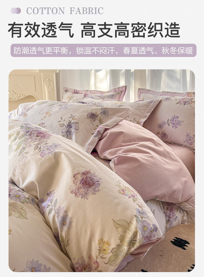 (总)卧趣家纺 2026新款纯棉花卉系列全棉印花四件套,风铃-紫,花悦容,佳昕-黄,嘉卉-紫,沐霖-桔,清珞-灰,清悠-粉,宛春-兰,晚柠-绿,晚柠-紫,秀颜-兰