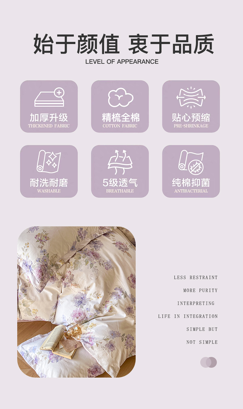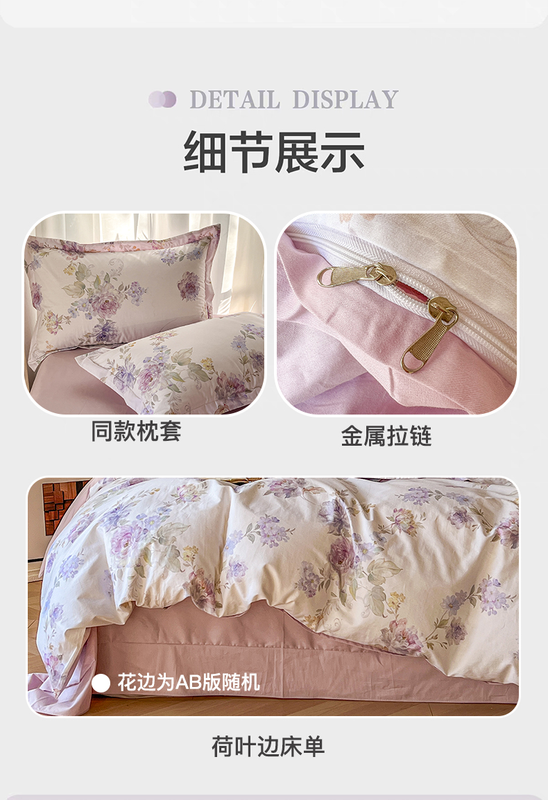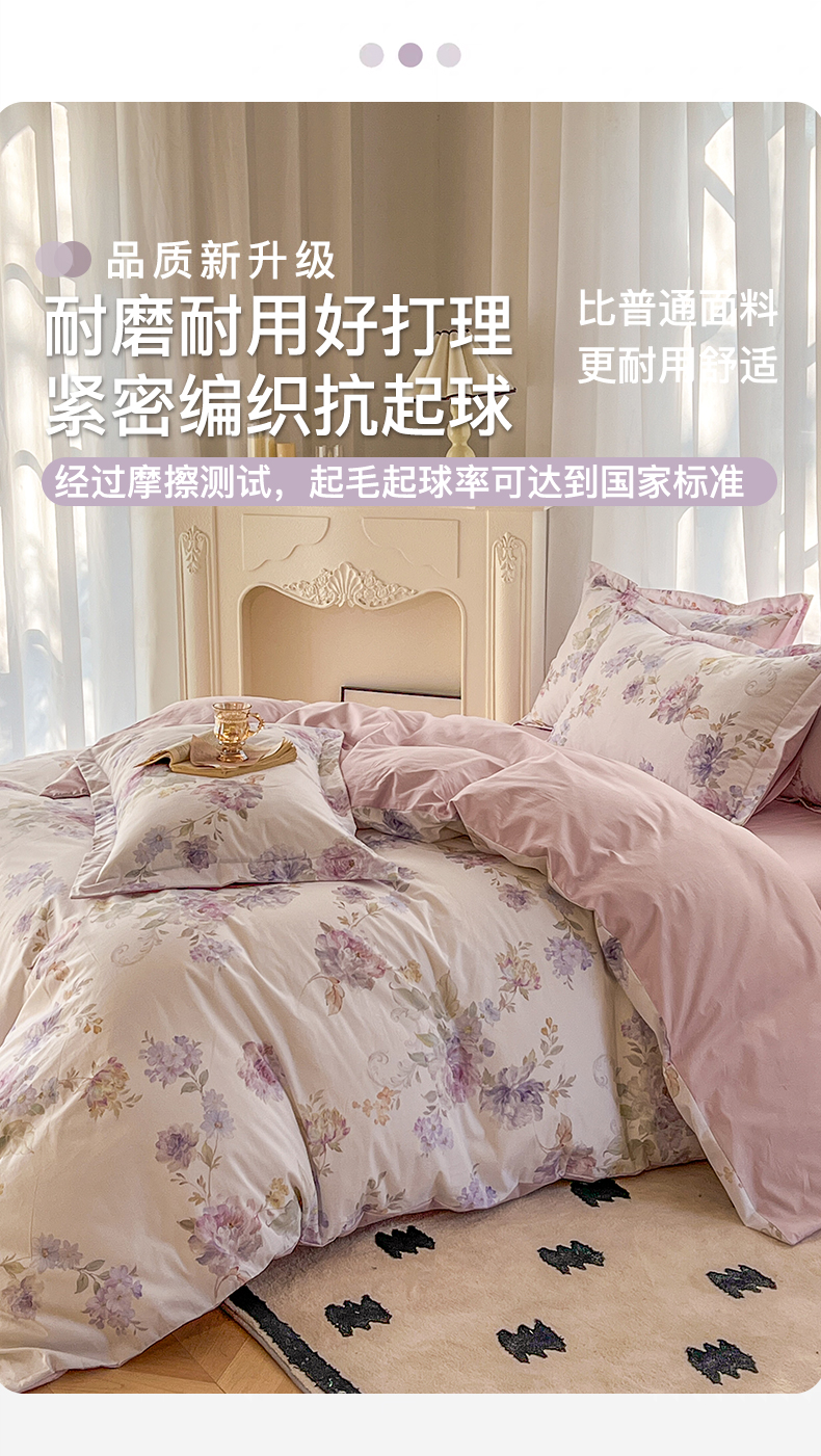商品名称:卧趣家纺 2026新款纯棉花卉系列全棉印花四件套 嘉卉-紫