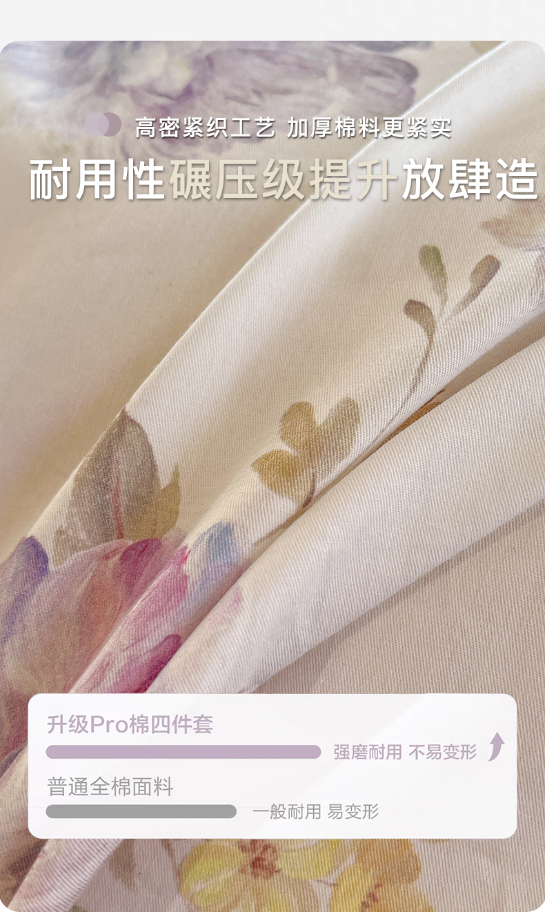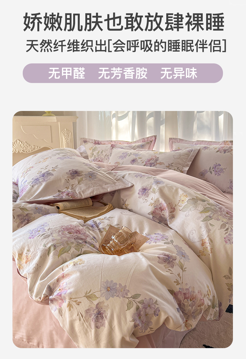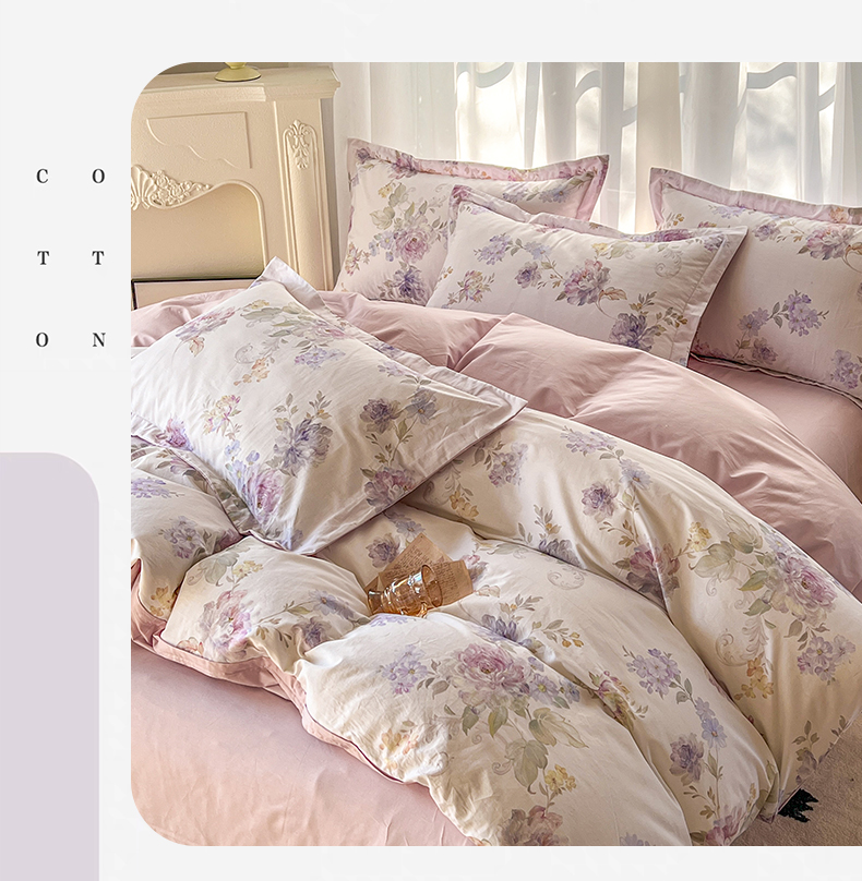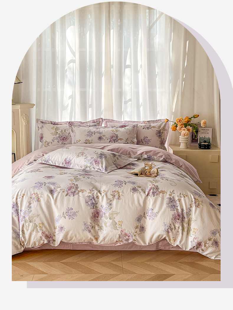 卧趣家纺 2026新款纯棉花卉系列全棉印花四件套 嘉卉-紫