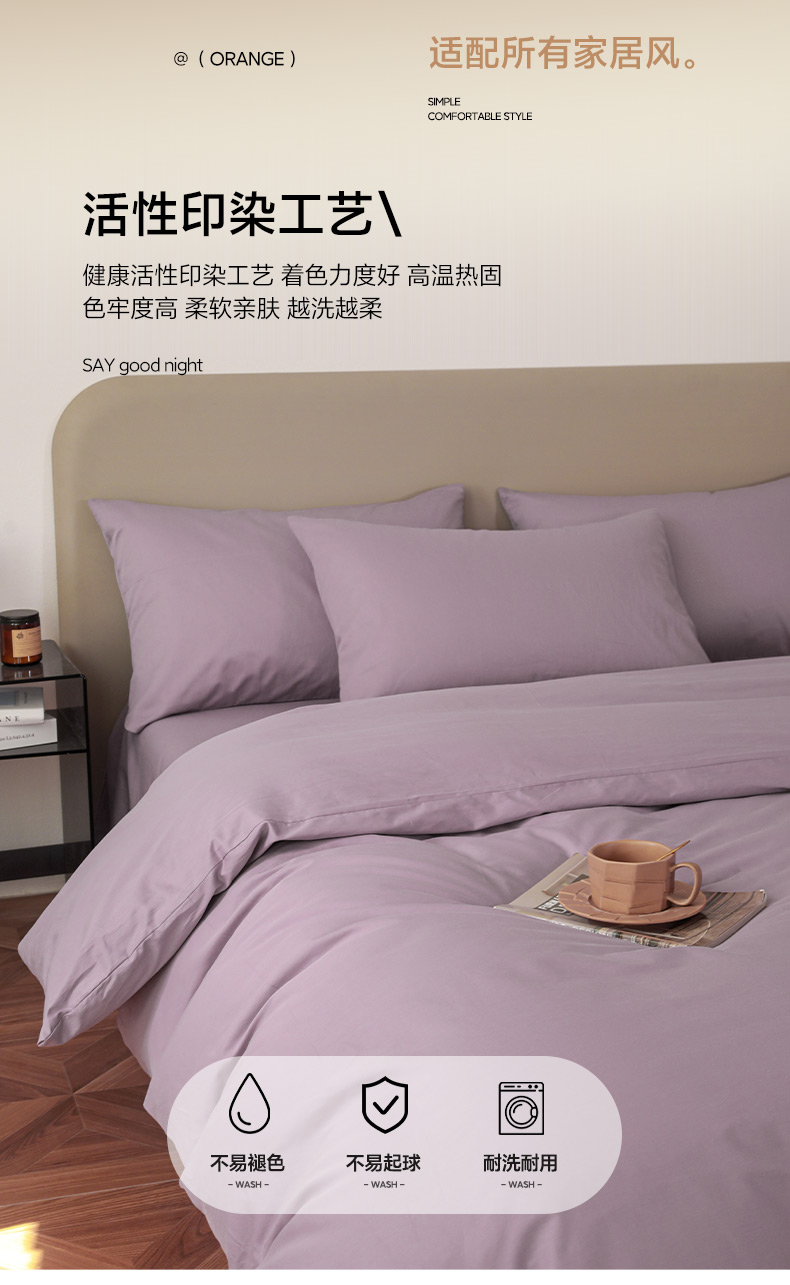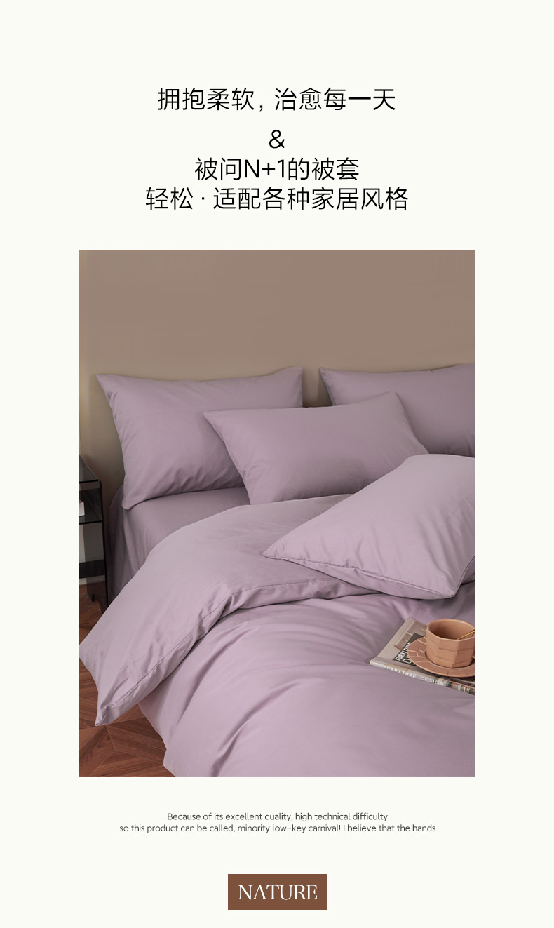 商品名称:盛馨家纺 2026新款40长绒棉ins美拉德色系纯色双拼全棉单品被套 茄花紫