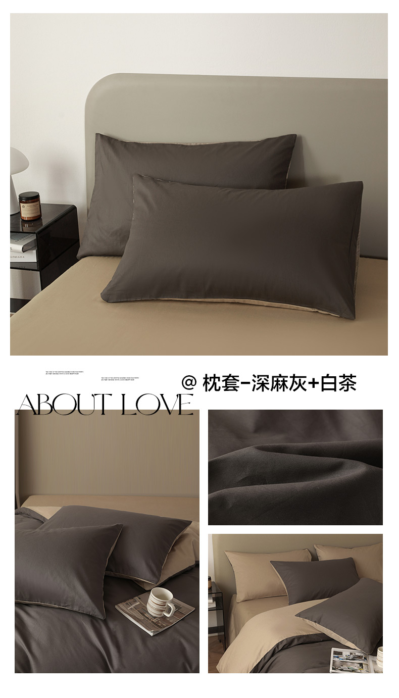商品名称:盛馨家纺 2026新款40长绒棉ins美拉德色系纯色双拼全棉单品枕套 深麻灰