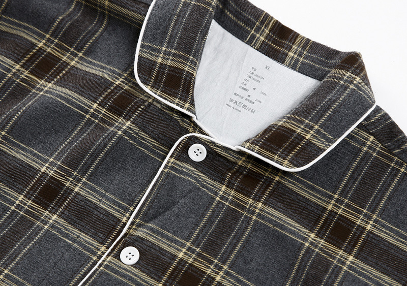 良品汇馆 2026【法兰绒家居服】法兰绒家居服良品情侣睡衣中格纹全棉睡衣绒布居家服纯棉 麻灰咖格-男