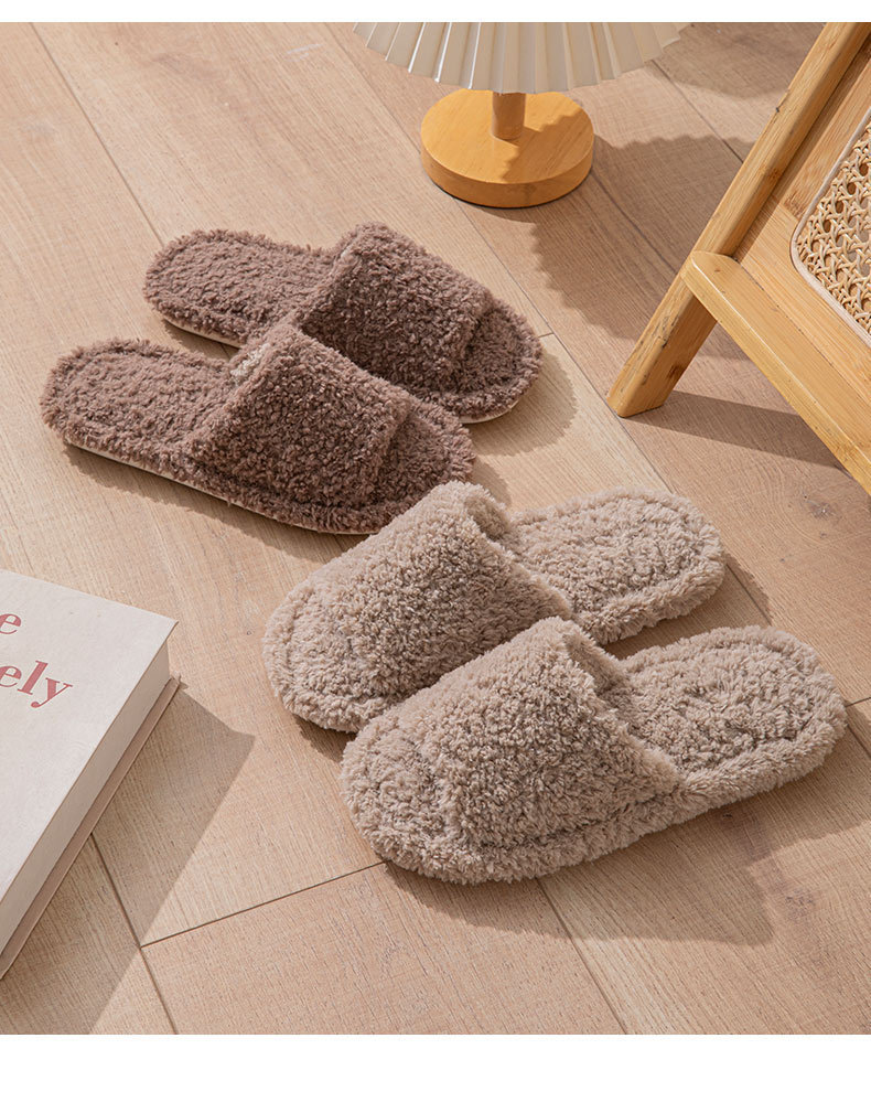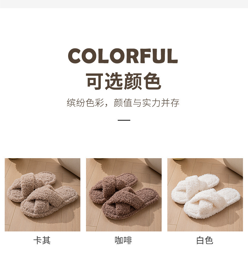 商品名称:良品汇馆 2026【泰迪绒拖鞋】毛绒家居地板拖鞋防水秋冬保暖静音泰迪绒拖鞋情侣 交叉款-白色