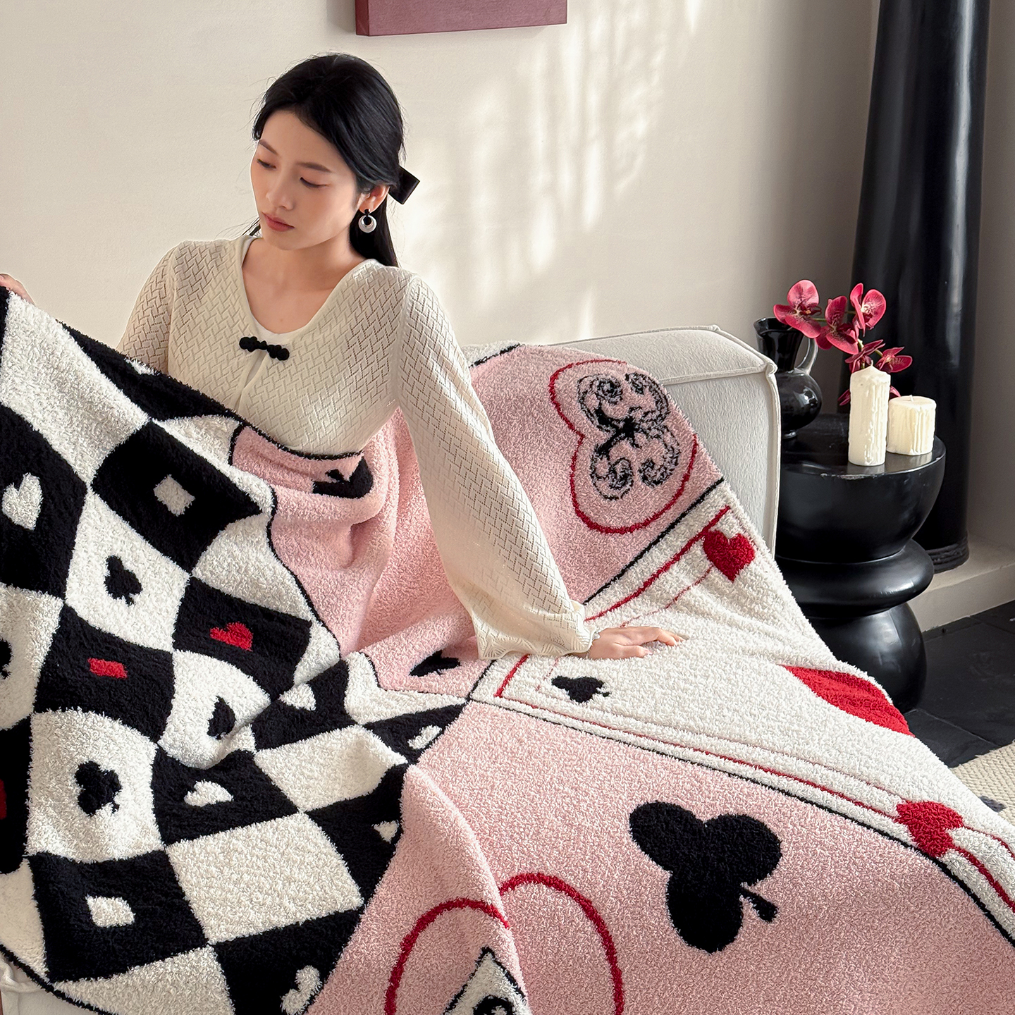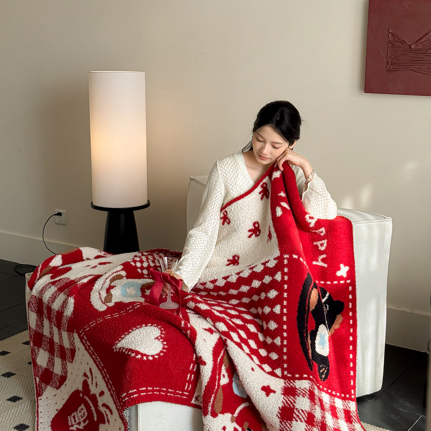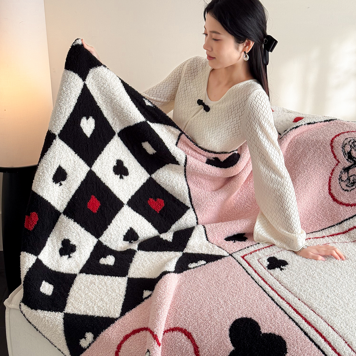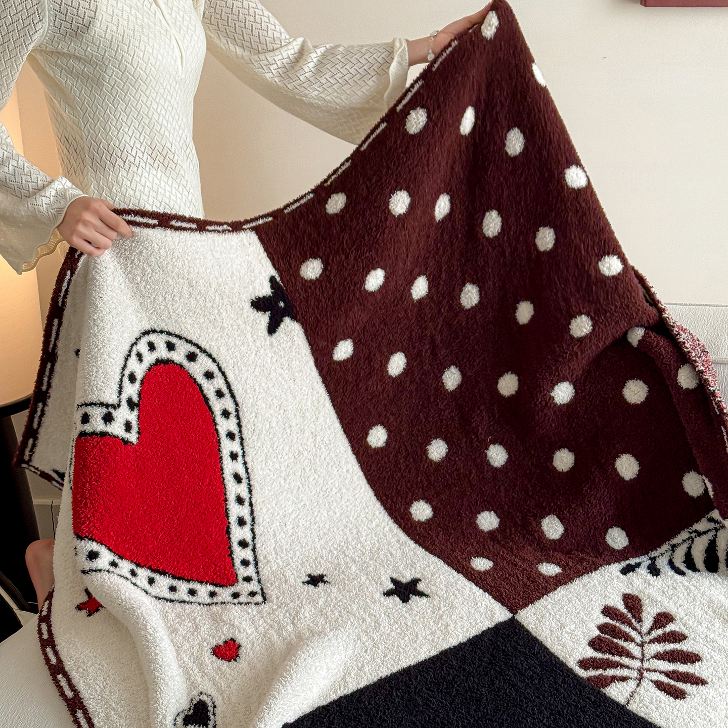 多乐娜 2026新款马年新年款半边绒毛毯高克重沙发毯盖毯130*170cm大尺寸(会员-10元!附送拎包! 严格控价:单款+40元起销售,禁止低价!) 红心效应