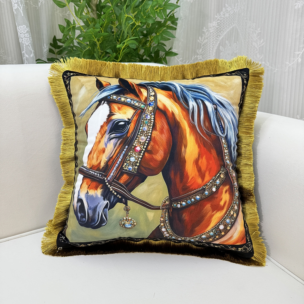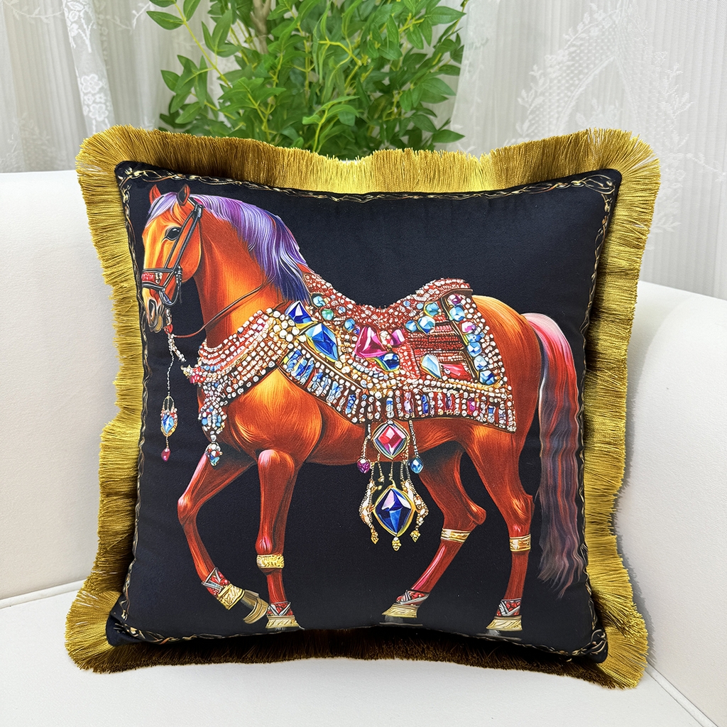 (总)爱家居 2025新款欧式美式沙发抱枕套靠垫套轻奢流苏白马绒抱枕含芯床头靠枕垫定制,汗血宝马,皇家白马,时尚斑马,皇家御马,珠光宝气马